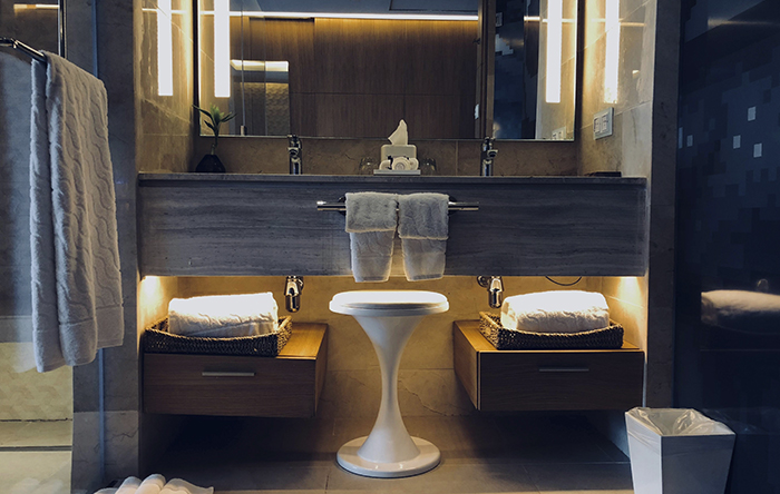 O banheiro é um espaço funcional ao mesmo tempo que é um espaço relaxante. O planejamento da iluminação é importante nessa parte para que você consiga criar essas duas sensações. Combine a luz geral e a direcionada para criar a iluminação ideal. Para a luz geral, dê preferência pela cor neutra em plafons. Para a direcionada, opte por uma luz amarelada em LED, arandela ou spots. Assim, você consegue criar as duas sensações em um só ambiente.