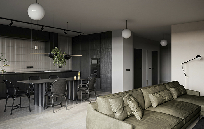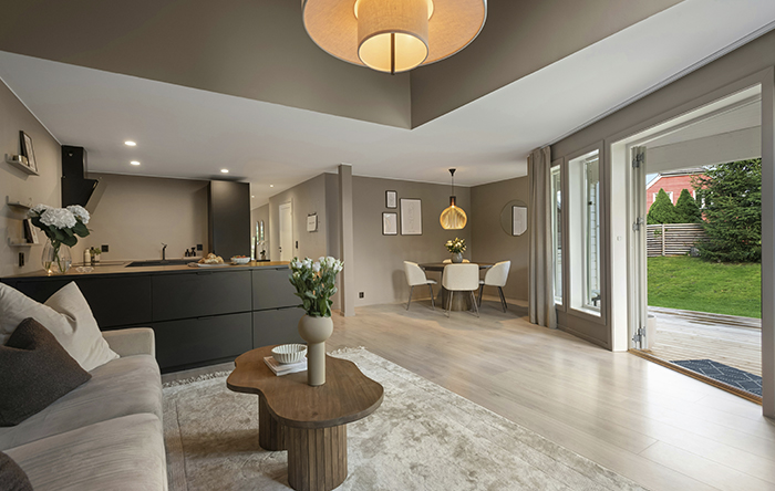 Uma das coisas que mais são deixadas de lado são os pisos e revestimentos, mas os pisos e revestimentos podem ser usados a seu favor. Com eles, você consegue criar ambientes que deixam uma sensação de fluidez ou que conseguem definir o ambiente. Você consegue definir discretamente essa divisão do ambiente, mas para isso é essencial ter uma transição sutil dos pisos. Opte por pisos que possuem o mesmo formato e marca, mas que ainda tenham um acabamento distinto, como polido e acetinado.