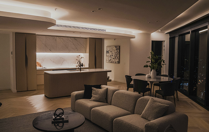 Uma das partes mais importantes para o planejamento do seu ambiente integrado é a iluminação. Isso porque, enquanto a sala é um ambiente de convívio, a cozinha é um ambiente que precisa de foco. Os dois precisam de uma iluminação completamente diferente, por isso fazer um planejamento da iluminação é importante.