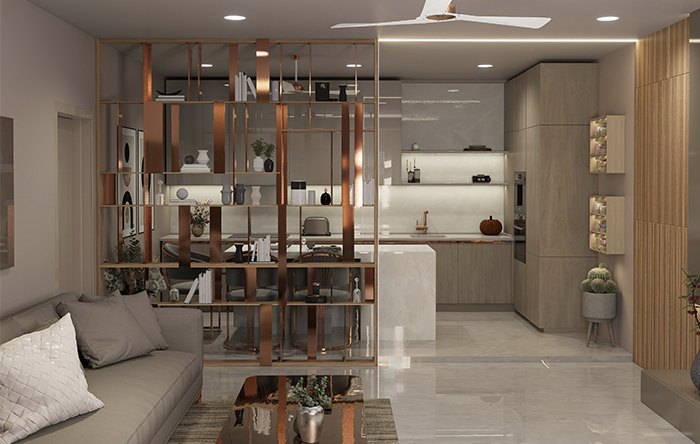 O primeiro passo para uma transição harmônica entre o ambiente integrado é planejar o layout perfeito. Isso é, definir o espaço de circulação e onde os móveis vão ficar. Nessa primeira parte, é importante analisar a sua rotina, observando a melhor disposição dos móveis que ao mesmo tempo não atrapalhe a circulação e ainda assim estejam dispostos de forma ergonômica e funcional.