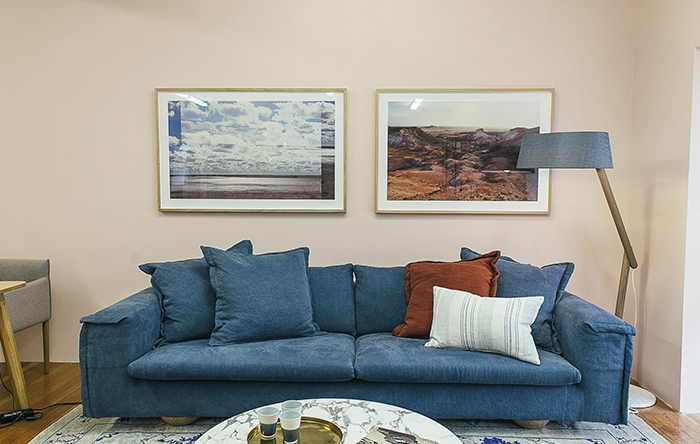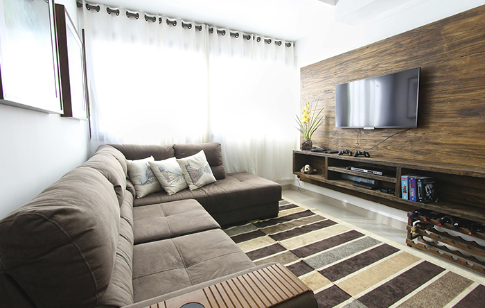 Um truque que você pode usar é usar as mesmas cores e tons próximos nas paredes, assim você consegue fazer sua sala parecer contínua, ajudando na ampliação.