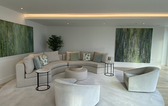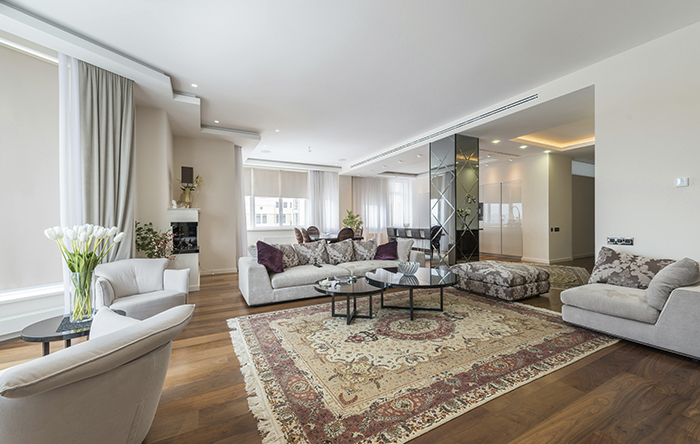 Ter um tapete em cor neutra na sala de estar cria uma atmosfera de acolhimento, tranquilidade e elegância. Ele dá um acabamento suave e torna o espaço visualmente mais equilibrado e quente, principalmente para tapetes neutros de lã e algodão. Tapetes neutros também possuem o benefício de ampliar visualmente seu espaço, já que essas cores conseguem refletir a luz. Essa neutralidade também consegue deixar a sala mais sofisticada, já que consegue equilibrar tanto com itens mais coloridos quanto neutros. Ele também facilita a mudança de estilos de decoração ao longo do tempo.