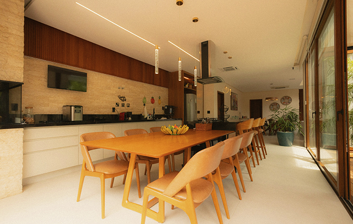 O que a torna ideal para o verão, já que você não precisa se preocupar com o calor de uma cozinha fechada e pode convidar seus amigos para uma tarde de verão em um ambiente fresco e ventilado que ainda possui uma conexão com a natureza.