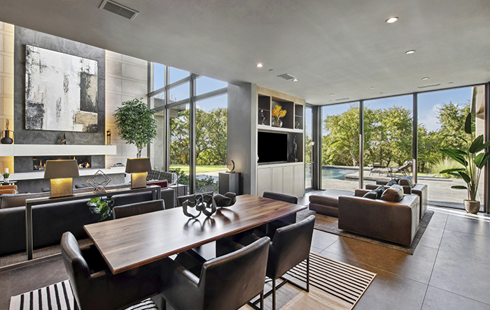 4 - Integração: A integração é essencial para a varanda gourmet. É fundamental que as três zonas da varanda conversem e harmonizem entre si, por isso é importante planejar tanto a disposição quanto o estilo dos móveis. Para essa integração, você pode dividir o espaço em três áreas, contra uma parede, a área de preparação, no centro, a área da mesa, e na outra parede, a área de estar.