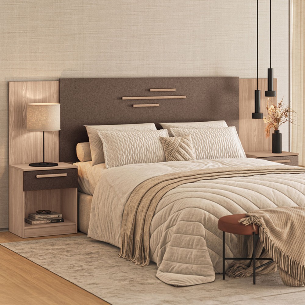 O(a) Cabeceira Casal Atlanta 2 Gavetas Wood/Terracota - Pnr Móveis é produzido em MDP e HDF na escala de brilho Semi-Fosco, e possui um grau de dificuldade de montagem: Médio.