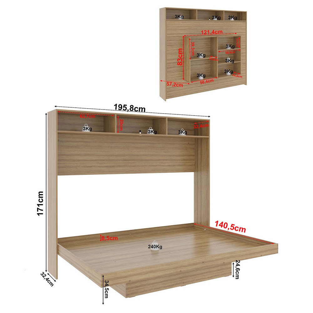 O(a) Cama de Casal Articulada 8 Prateleiras Cm8043 Amêndoa - Tecno Mobili é produzido em MDP na escala de brilho Semi-Brilho, e possui um grau de dificuldade de montagem: Médio.