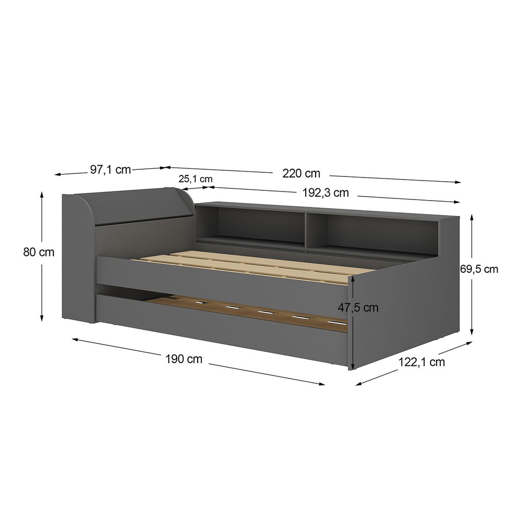 O(a) Cama Infantil Bellagio 1 Porta com Cama Auxiliar Grafite - Pnr Móveis é produzido em MDP na escala de brilho Fosco, e possui um grau de dificuldade de montagem: Médio.