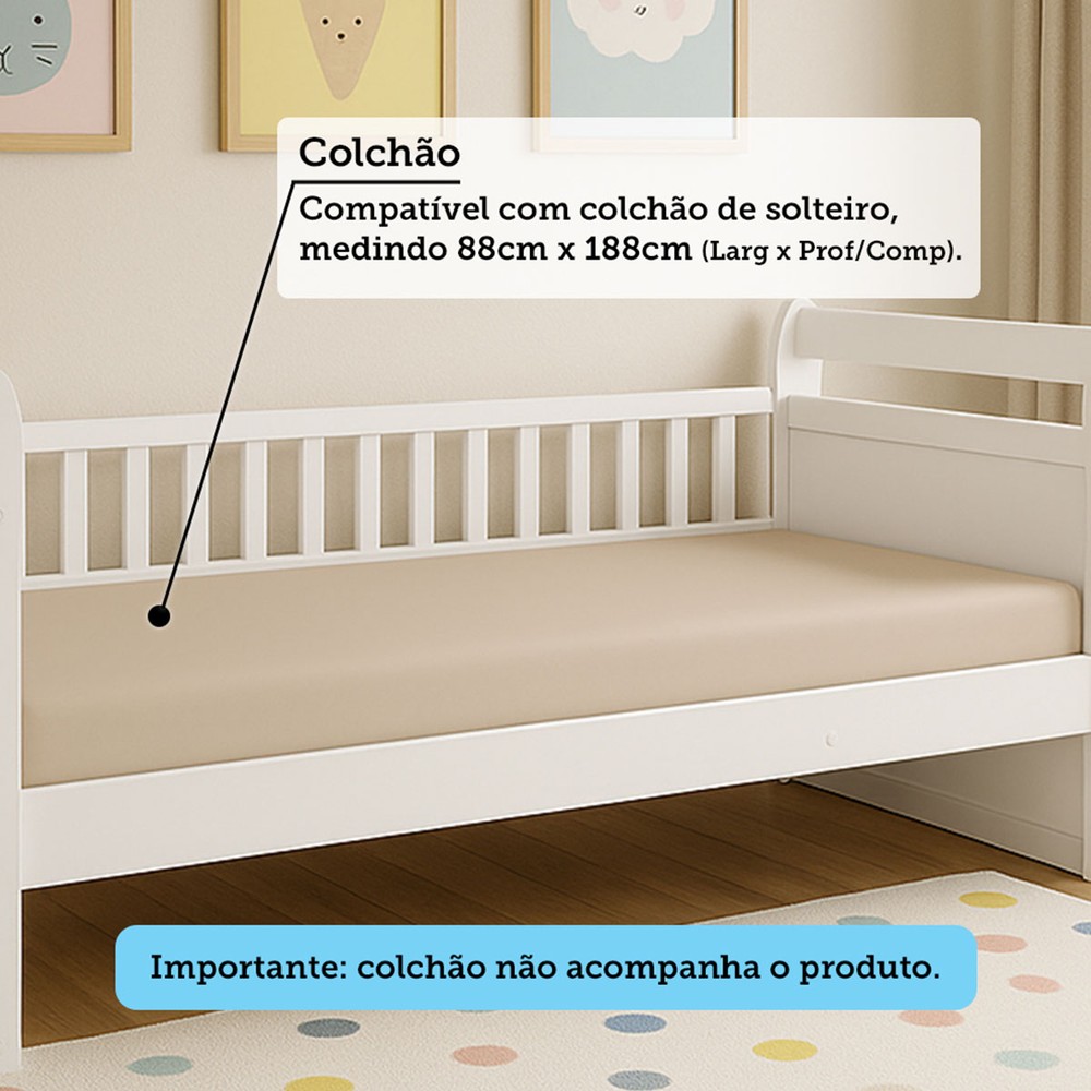 O(a) Cama Infantil Maria 100% Mdf Branco Brilho - Móveis Peroba é produzido em 100% MDF na escala de brilho Brilhante, e possui um grau de dificuldade de montagem: Médio.
