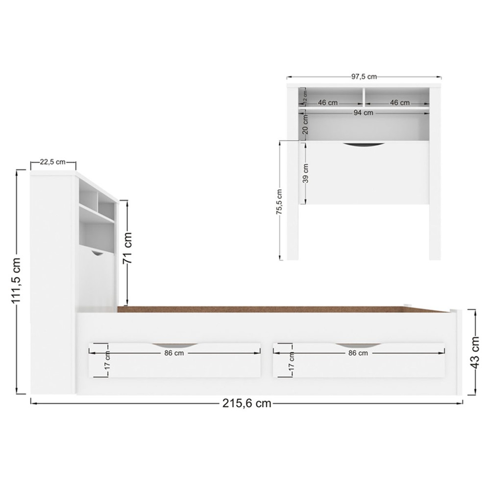 O(a) Cama Solteiro Invicta 1 Porta 2 Gavetas com Tomada Branco - Santos Andirá é produzido em MDF, MDP e HDF na escala de brilho Semi-Fosco, e possui um grau de dificuldade de montagem: Médio.