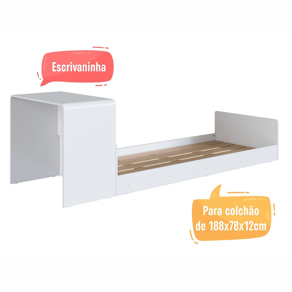 Cama Solterio Infanto Juvenil com Escrivaninha de Estudo Branco - Completa Móveis