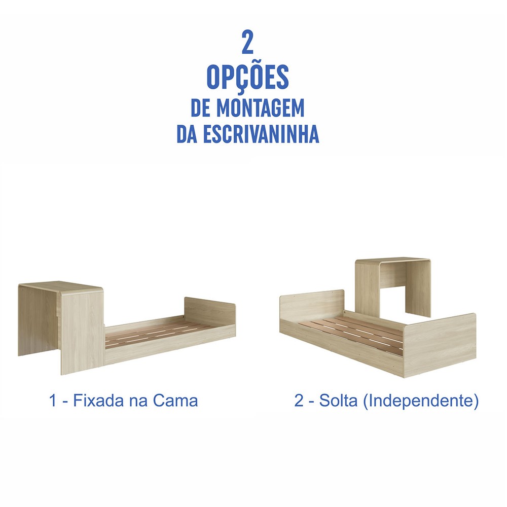 Acompanha Cama Solteiro + Escrivaninha + Kit Ferragens + Manual de Montagem