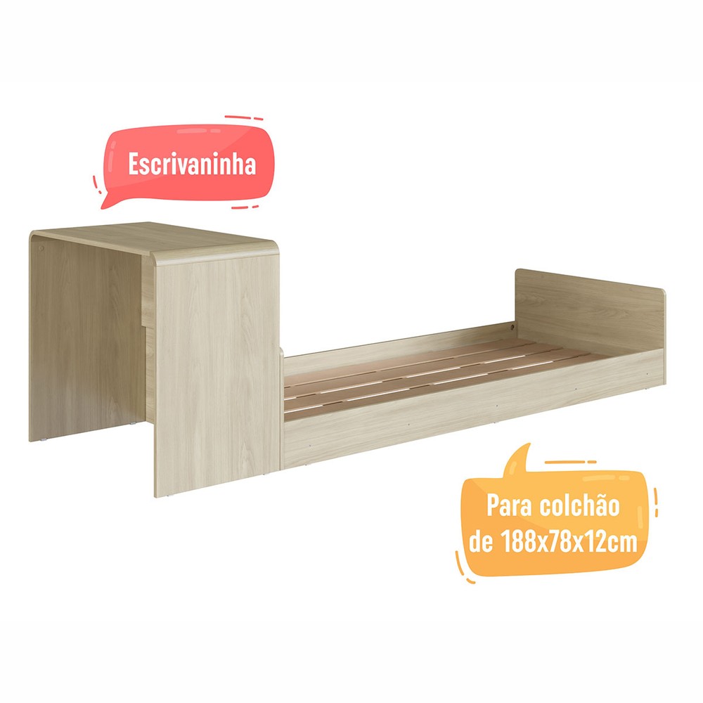 Cama Solterio Infanto Juvenil com Escrivaninha de Estudo Carvalho/Araguaia - Completa Móveis