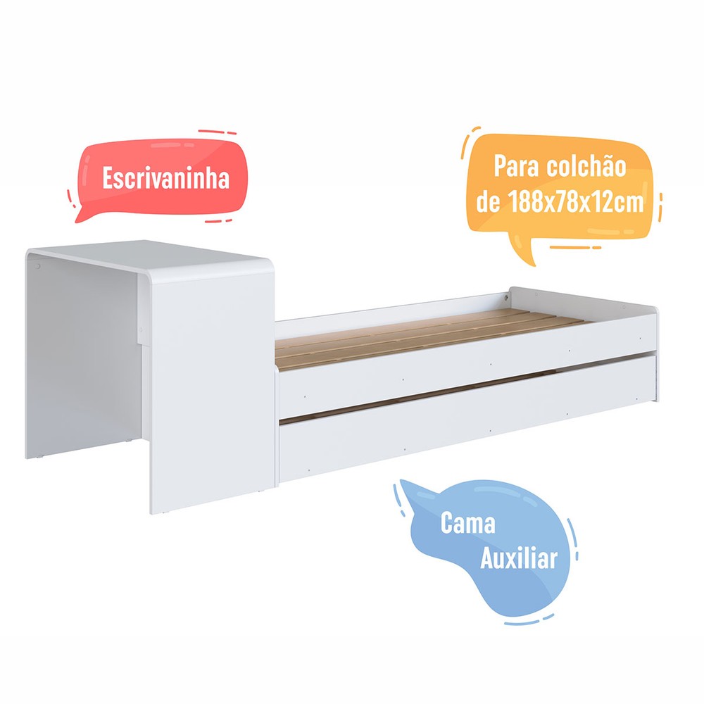 Cama Solterio Infanto Juvenil com Escrivaninha e Cama Auxiliar Branco - Completa Móveis