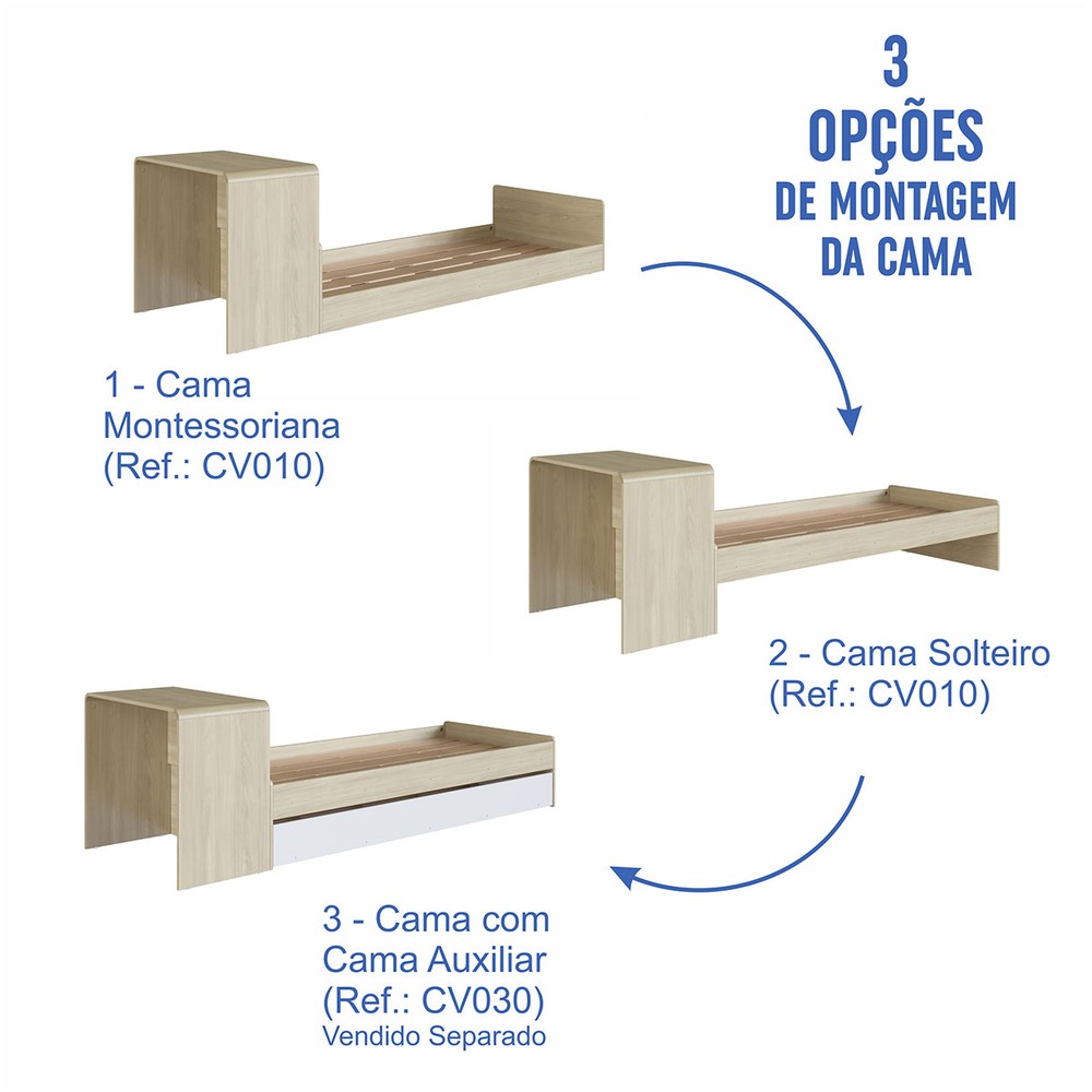 Acompanha Cama Solteiro + Escrivaninha + Cama Auxiliar + Kit Ferragens + Manual de Montagem