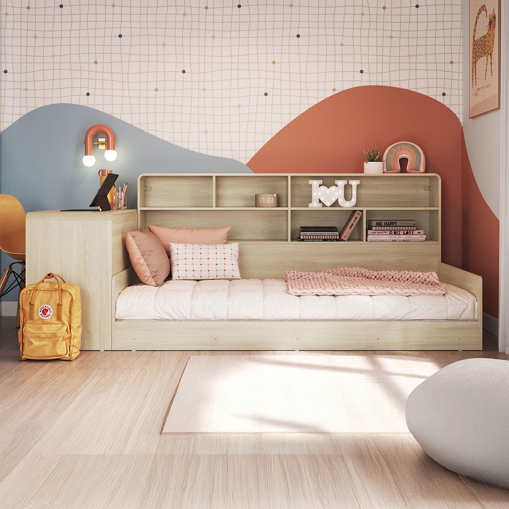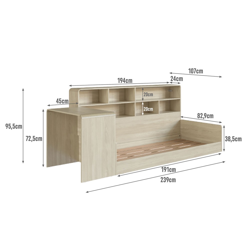 O(a) Cama Solterio Infanto Juvenil com Escrivaninha para Estudo e Estante Carvalho/Araguaia - Completa Móveis é produzido em MDP na escala de brilho Fosco, e possui um grau de dificuldade de montagem: Médio.