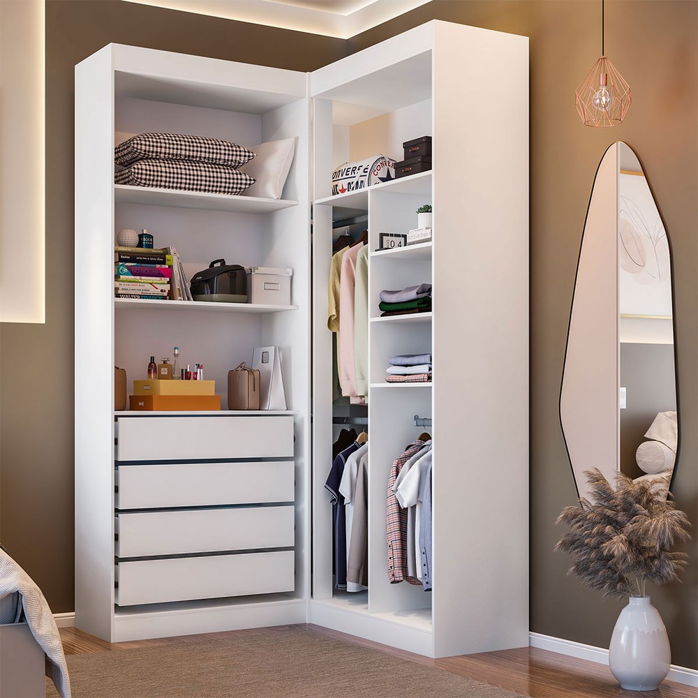 O(a) Closet Casal Salvo 4 Gavetas 7 Prateleiras Branco - Pnr Móveis é produzido em MDP na escala de brilho Fosca com Textura, e possui um grau de dificuldade de montagem: Médio.