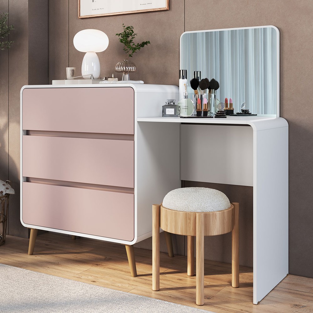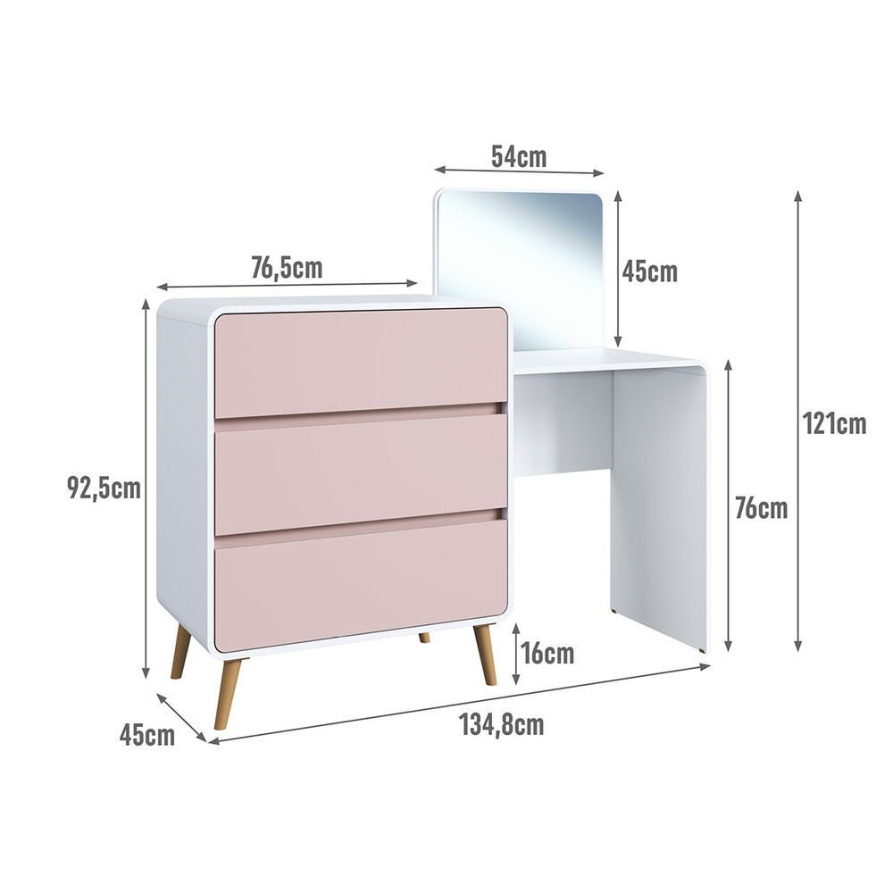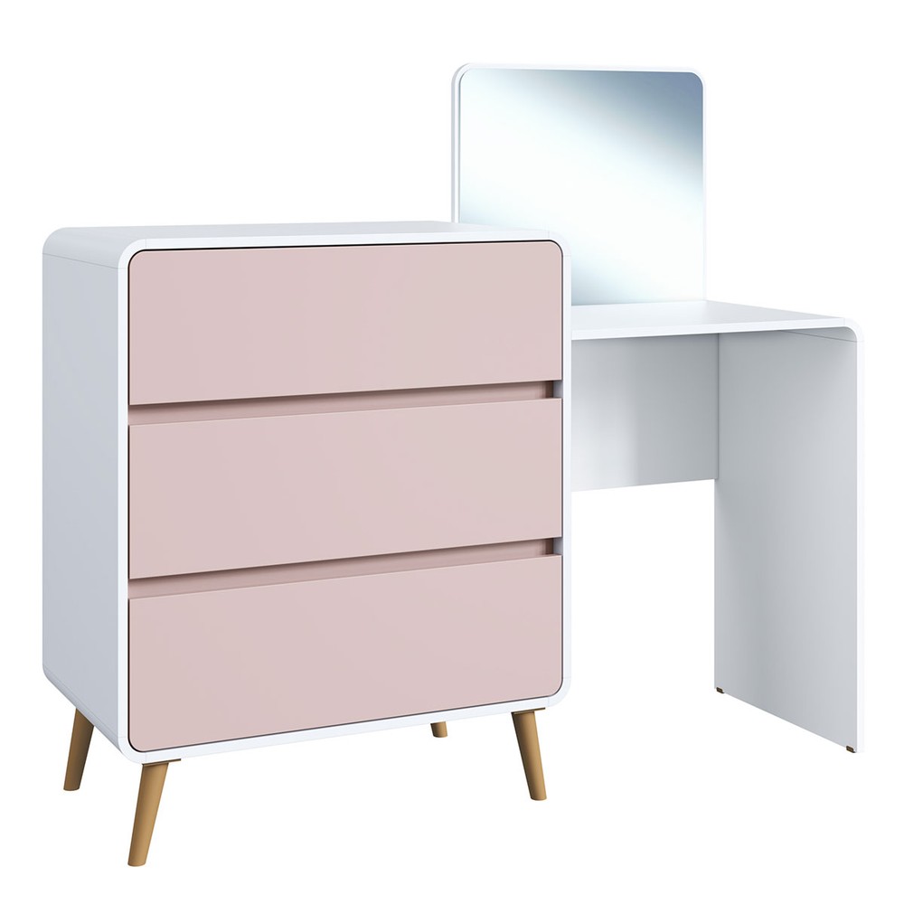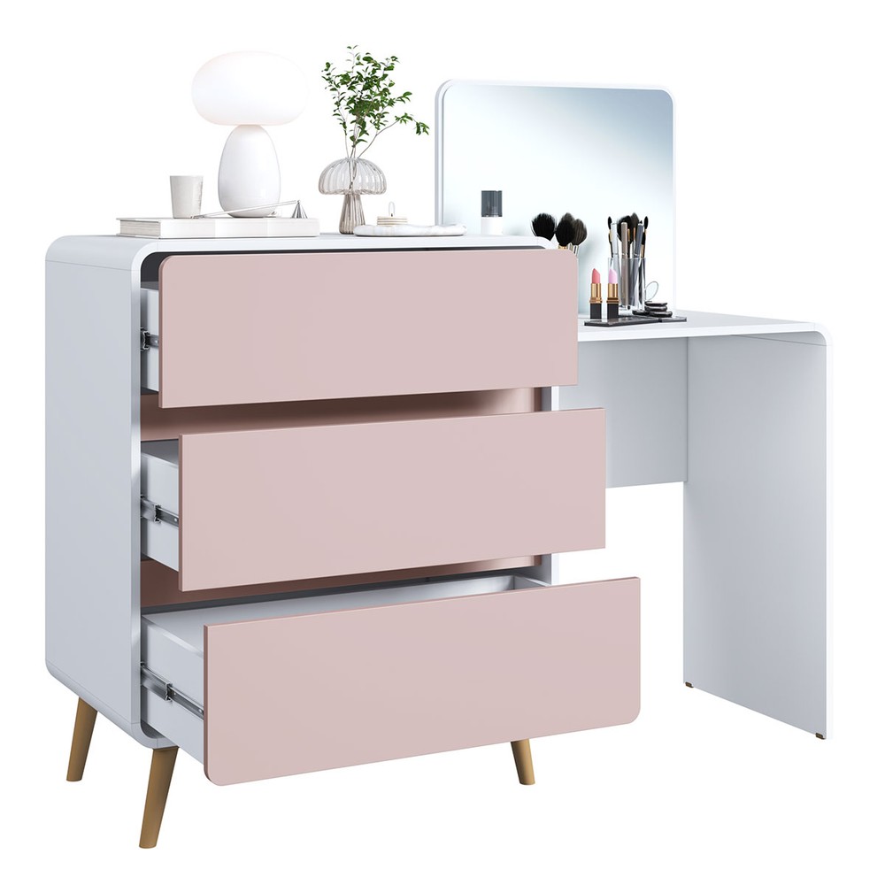 Cômda Infantil Curve 3 Gavetas com Espelho Branco/Rosa - Completa Móveis