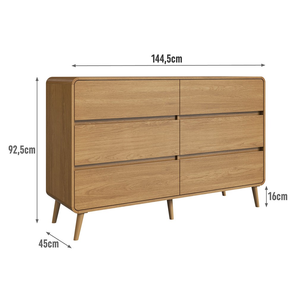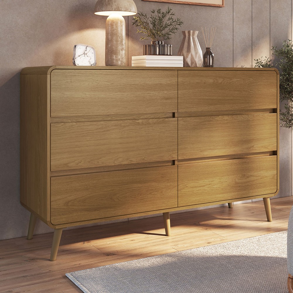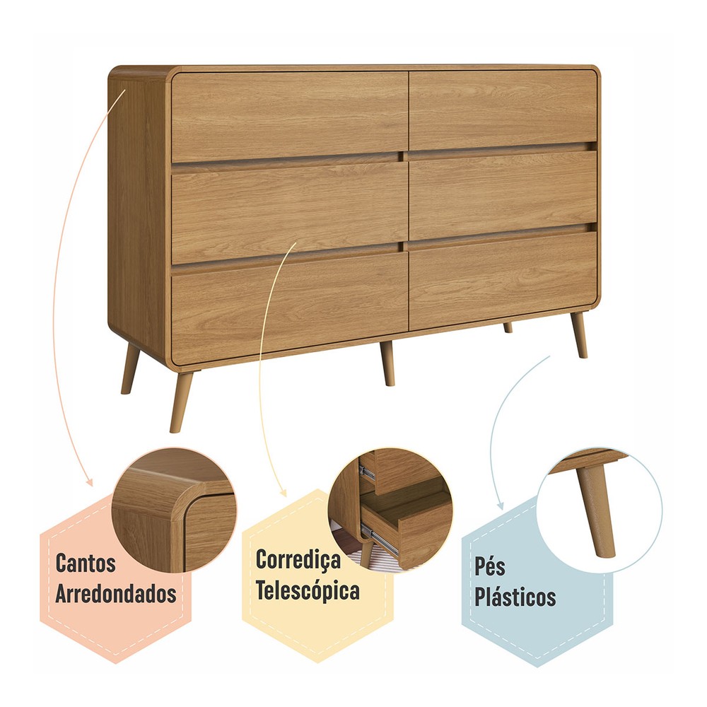 Cômda Infantil Curve 6 Gavetas Carvalho Xingu - Completa Móveis