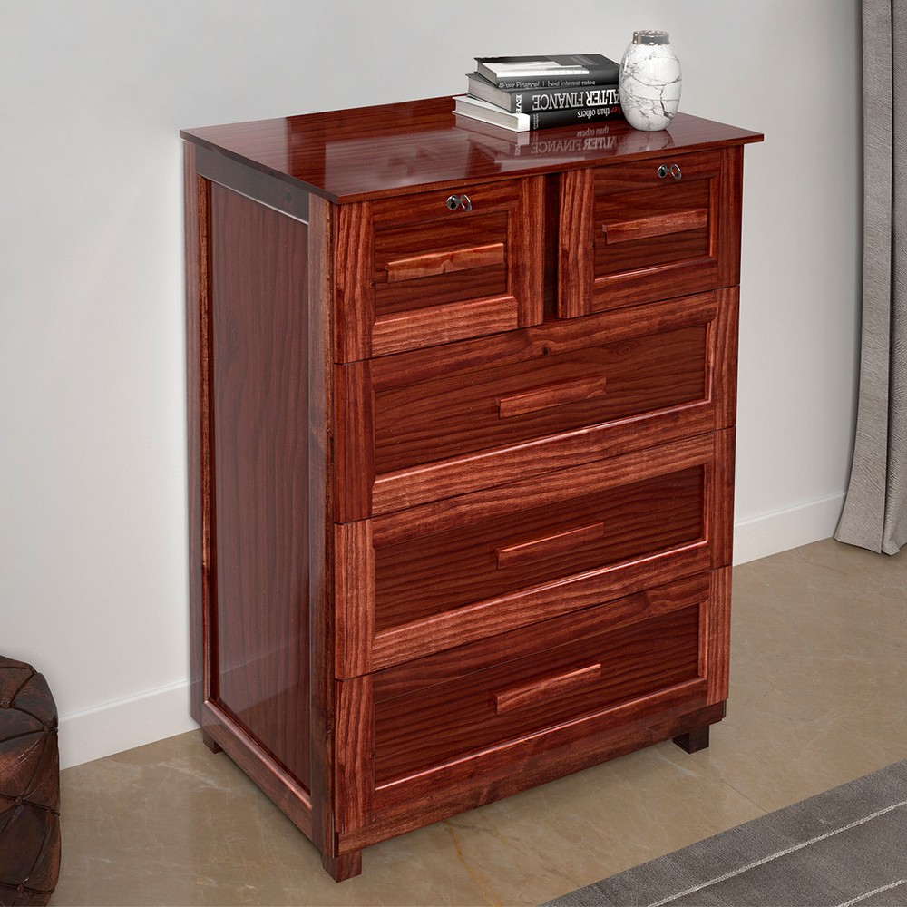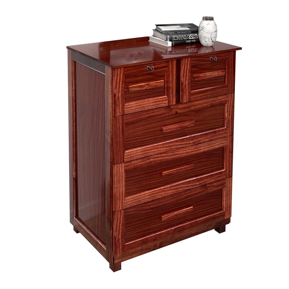 O(a) Cômoda Amazonas Clean 5 Gavetas Mel - Rodmóveis é produzido em Pinus e HDF na escala de brilho Fosco, e possui um grau de dificuldade de montagem: Médio.