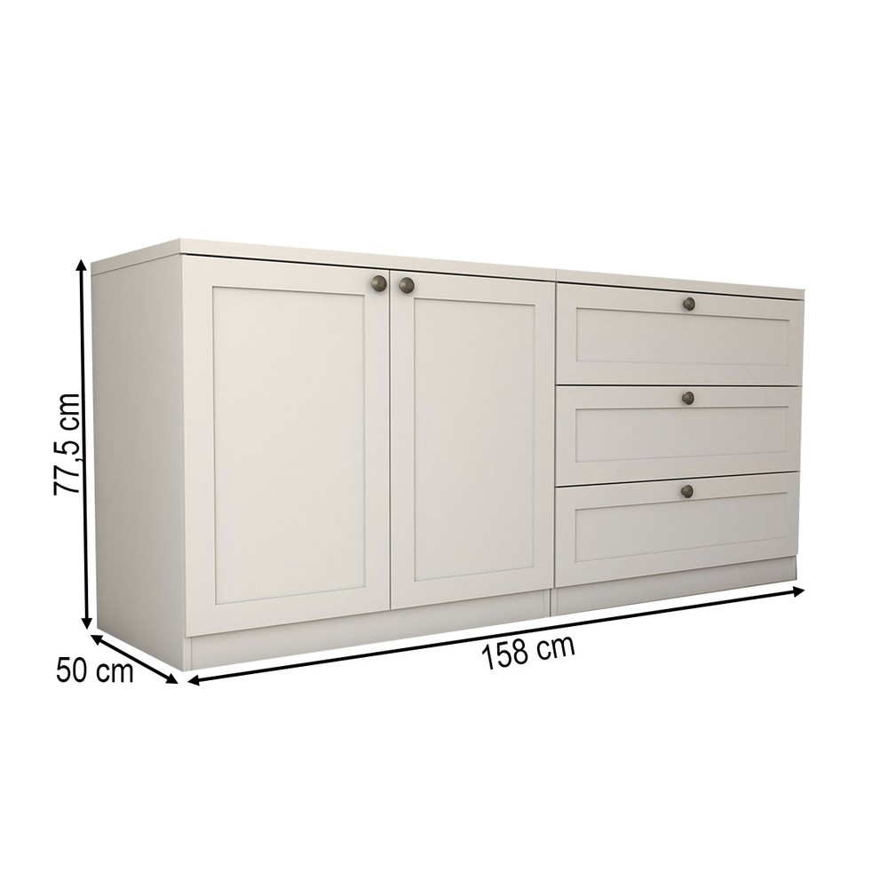 Cômoda Americana 2 Portas 3 Gavetas 100% Mdf Branco Fosco - Panorama Móveis