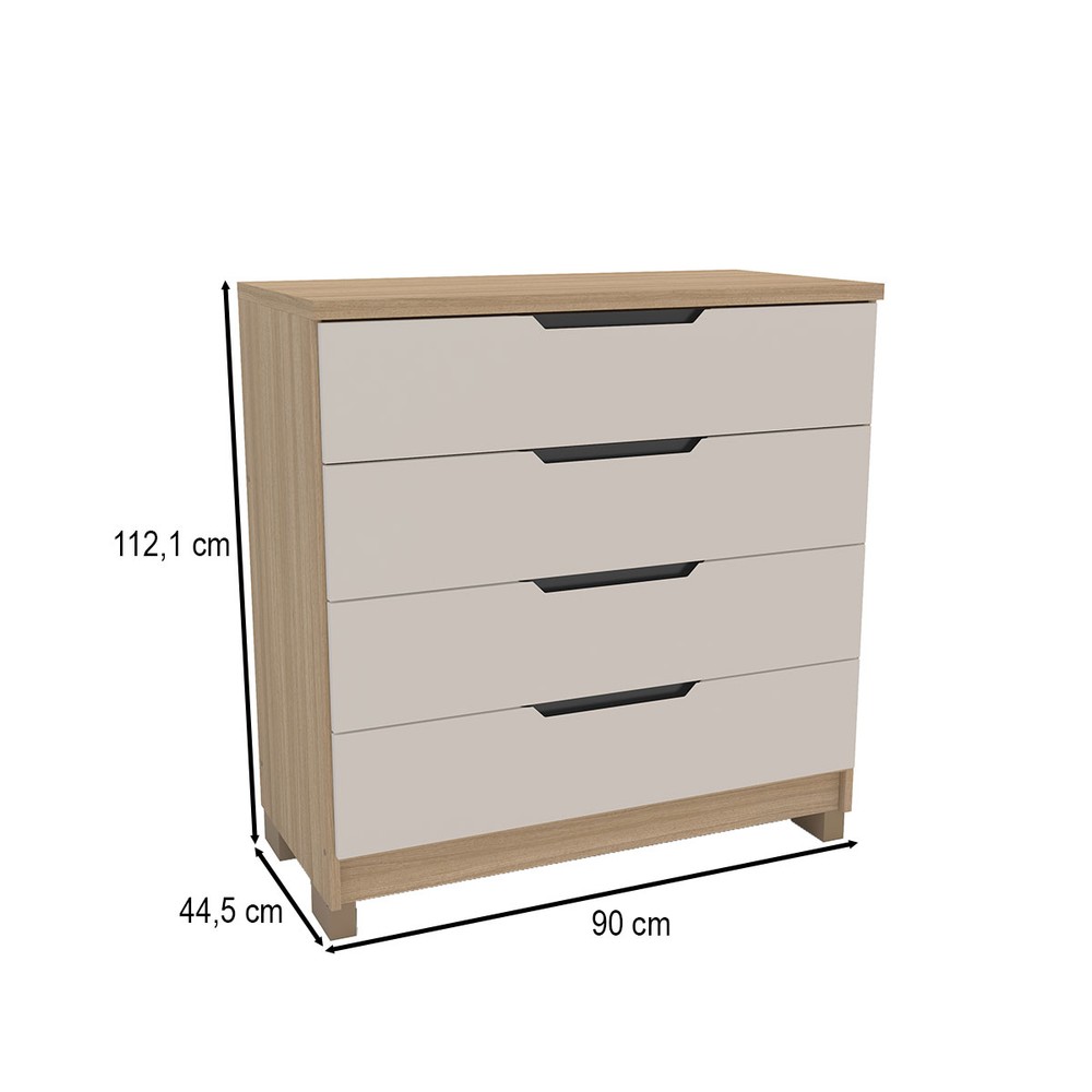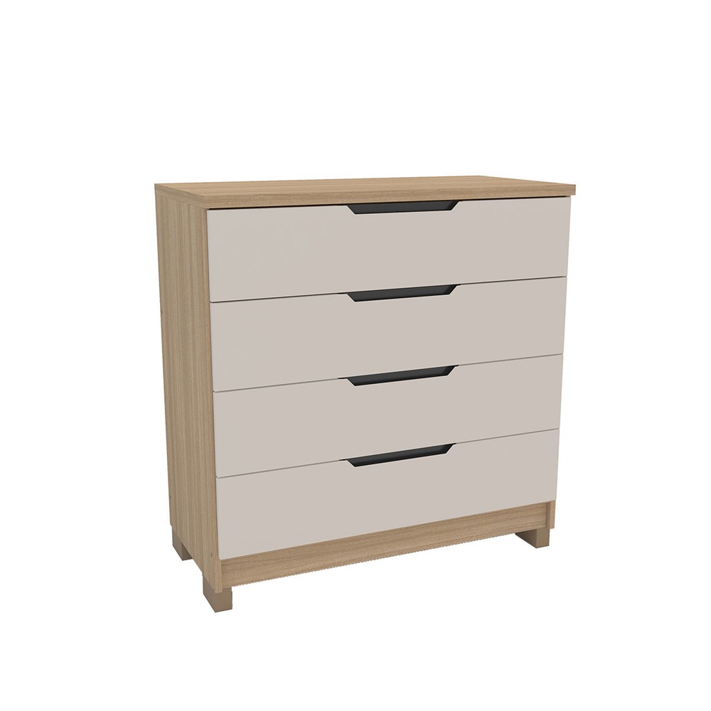O(a) Cômoda Barcelona 5 Gavetas Carvalho/Off White - Politorno é produzido em MDF na escala de brilho Semi-Brilho, e possui um grau de dificuldade de montagem: Médio.