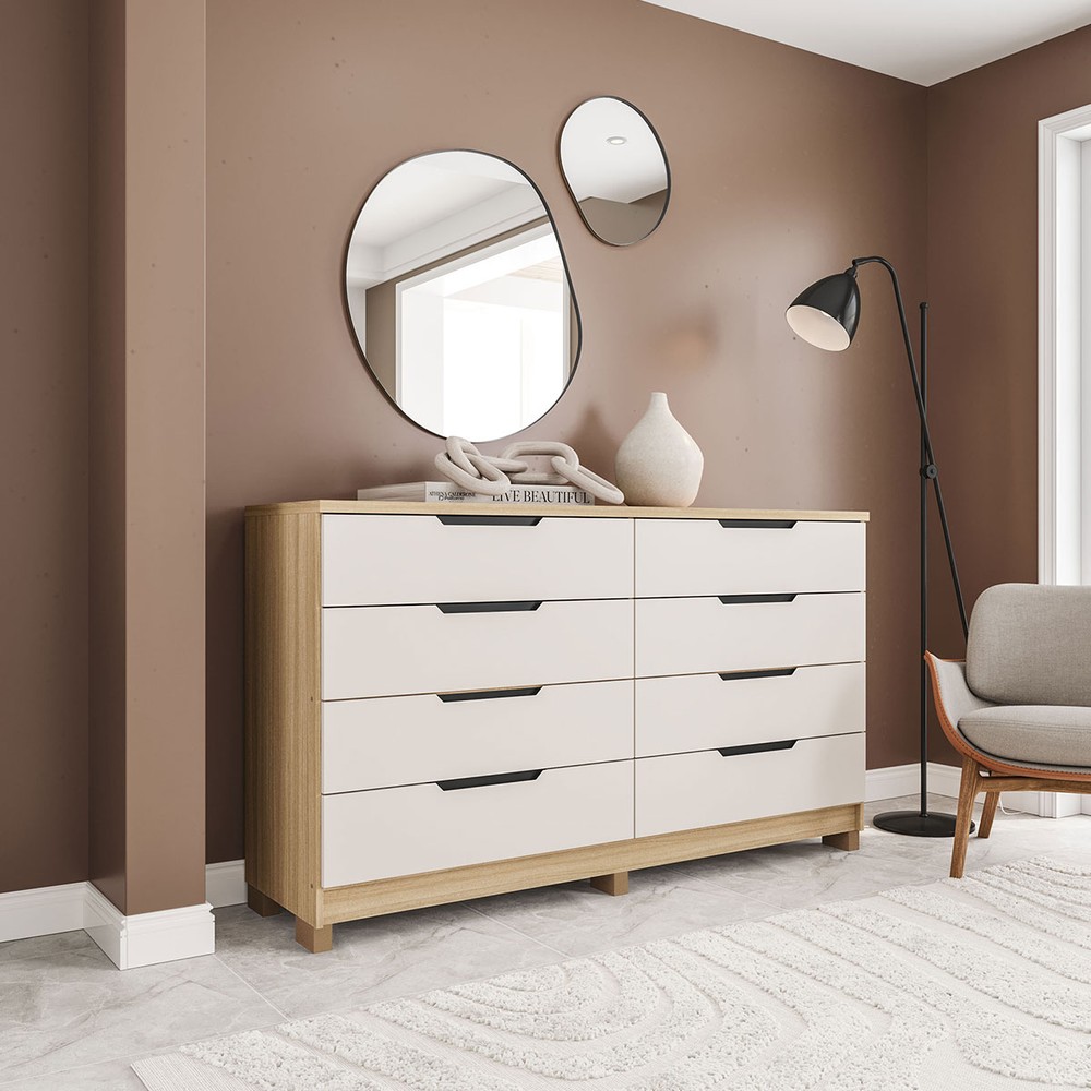 Cômoda Barcelona 8 Gavetas Carvalho/Off White - Politorno