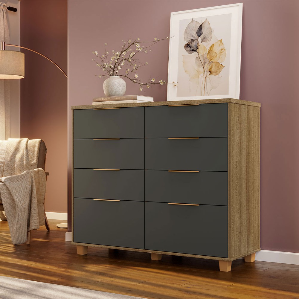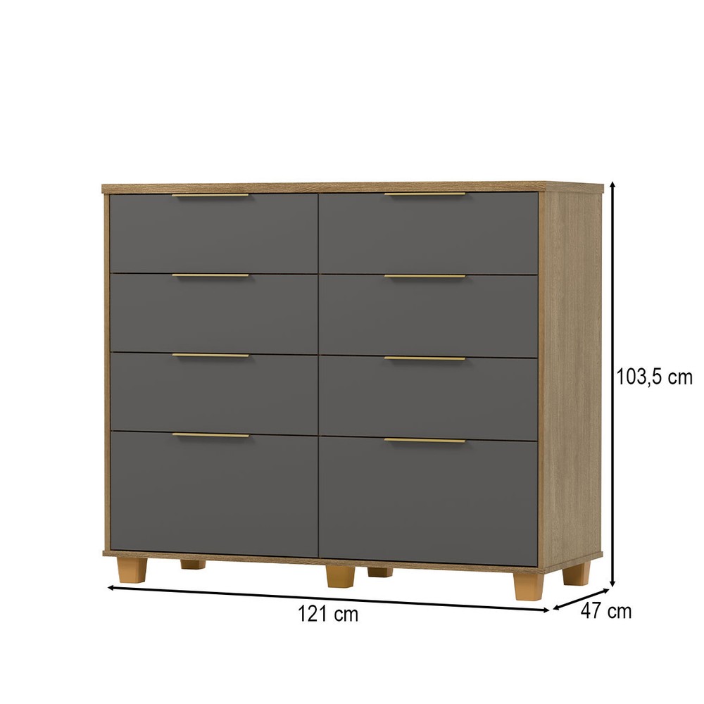 O(a) Cômoda Cairo 8 Gavetas Nature/Alasca - Pnr Móveis é produzido em MDF na escala de brilho Fosco, e possui um grau de dificuldade de montagem: Médio.