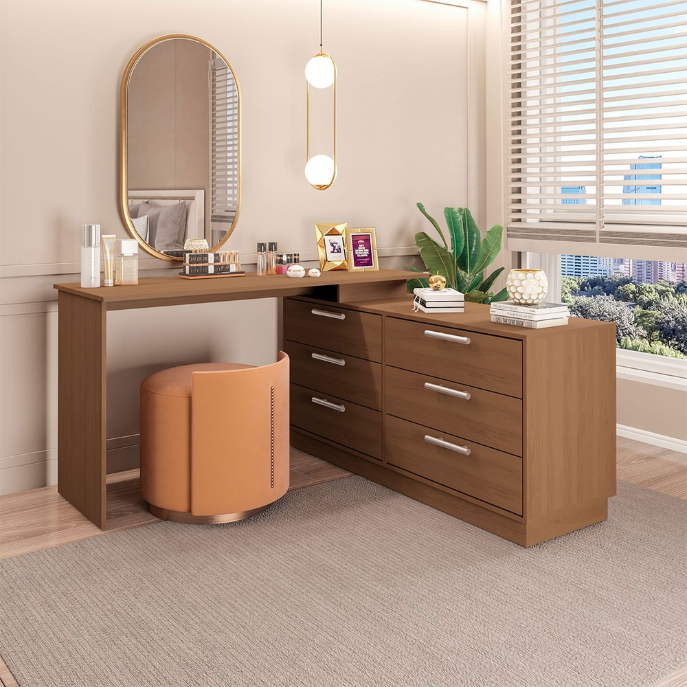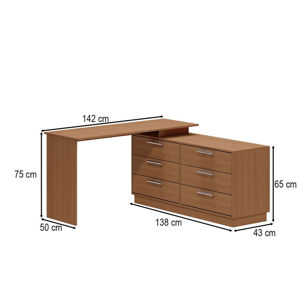 O(a) Cômoda com Mesa Escrivaninha Rocher 6 Gavetas Freijó - Pnr Móveis é produzido em MDP na escala de brilho Fosca com Textura, e possui um grau de dificuldade de montagem: Médio.