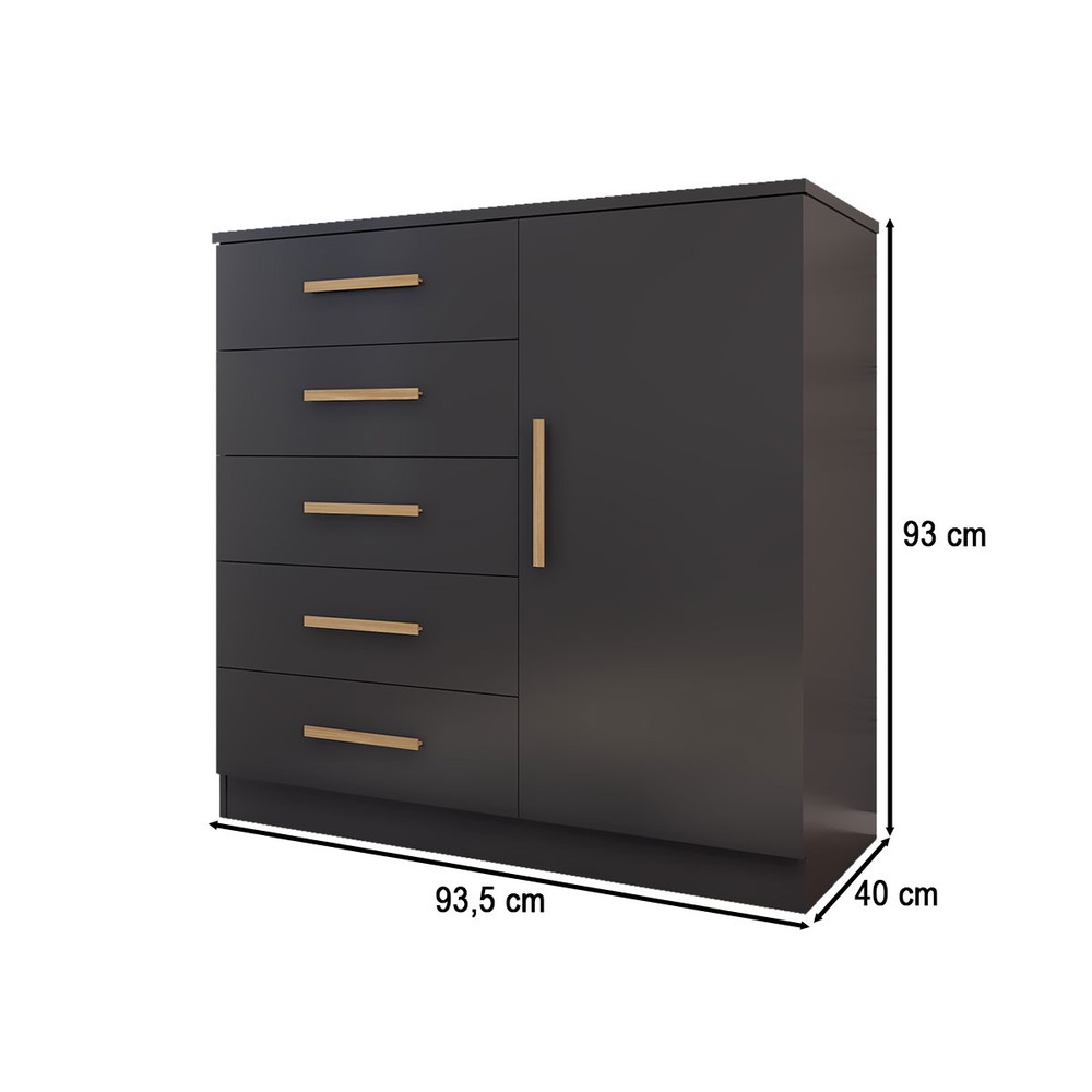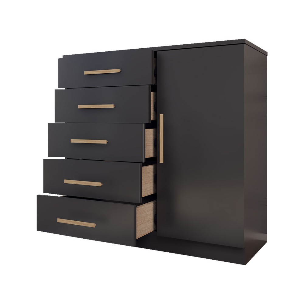 Cômoda Divini 1 Porta 5 Gavetas Black - Panorama Móveis