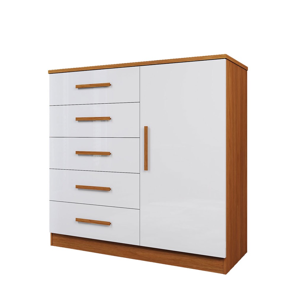 Cômoda Divini 1 Porta 5 Gavetas Cinamomo/Branco - Panorama Móveis