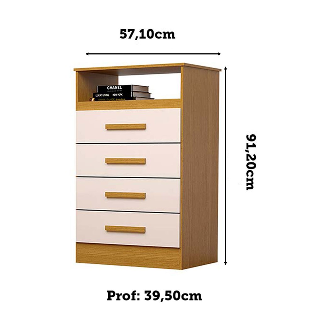 O(a) Cômoda Gaveteiro Jéssica 4 Gavetas 100% Mdf Cinamomo/Off White - Acp Móveis é produzido em 100% MDF e MDF na escala de brilho Ajustar, e possui um grau de dificuldade de montagem: Médio.