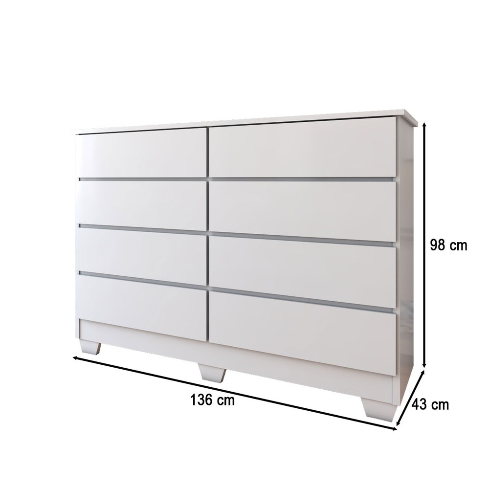 O(a) Cômoda House 8 Gavetas com Pés Branco - Panorama Móveis é produzido em MDP na escala de brilho Brilho e Fosco, e possui um grau de dificuldade de montagem: Médio.