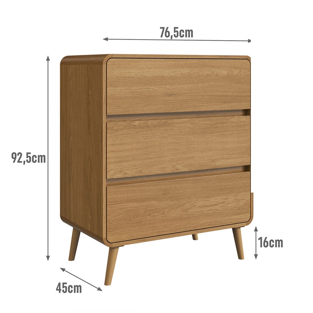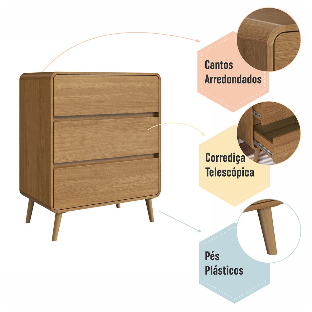 Cômoda Infantil Curve 3 Gavetas Carvalho Xingu - Completa Móveis