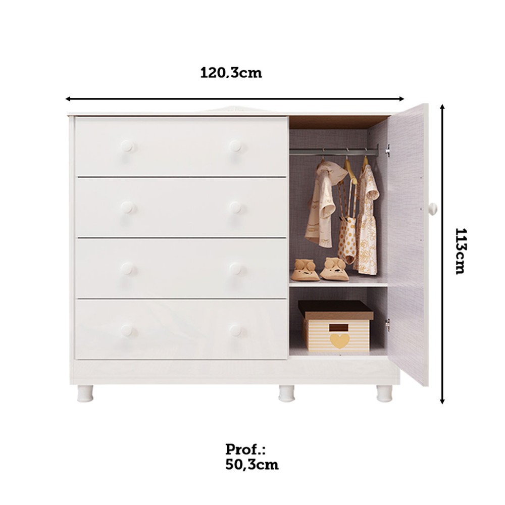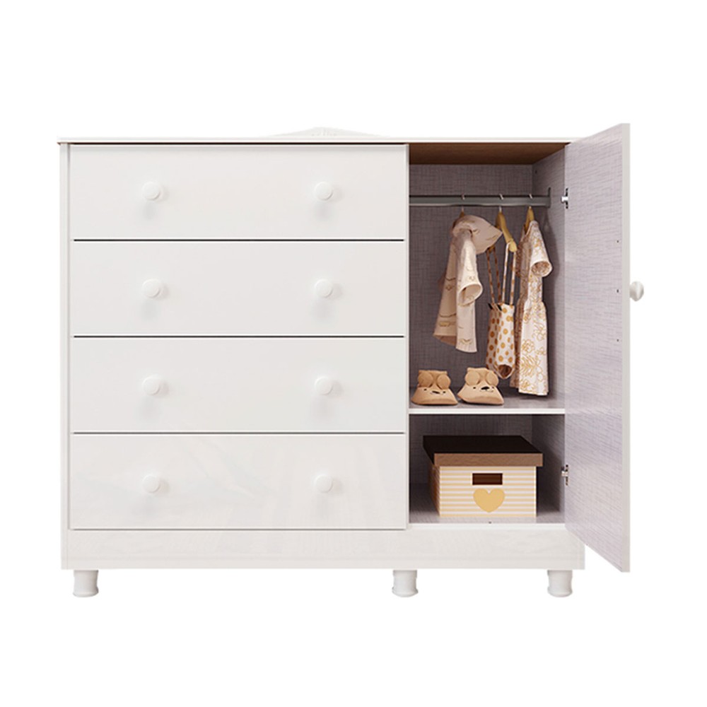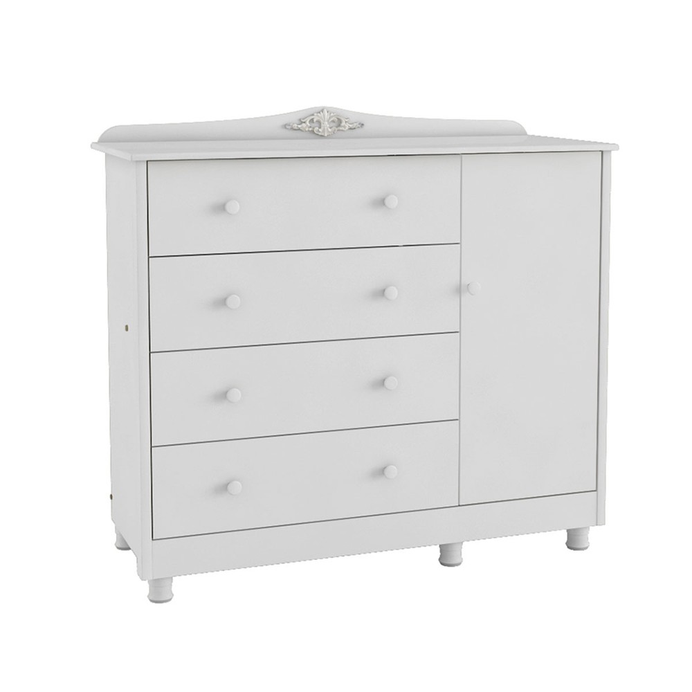 Cômoda Infantil Elô 1 Porta 4 Gavetas 100% Mdf Branco Brilho - Móveis Peroba