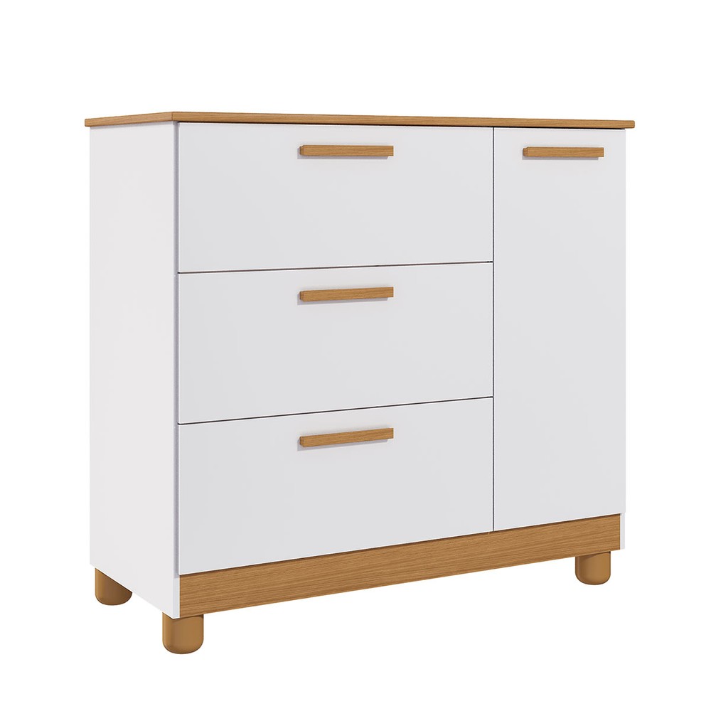 Cômoda Infantil Jujuba 3 Gavetas 1 Porta Branco/Nature - Permóbili