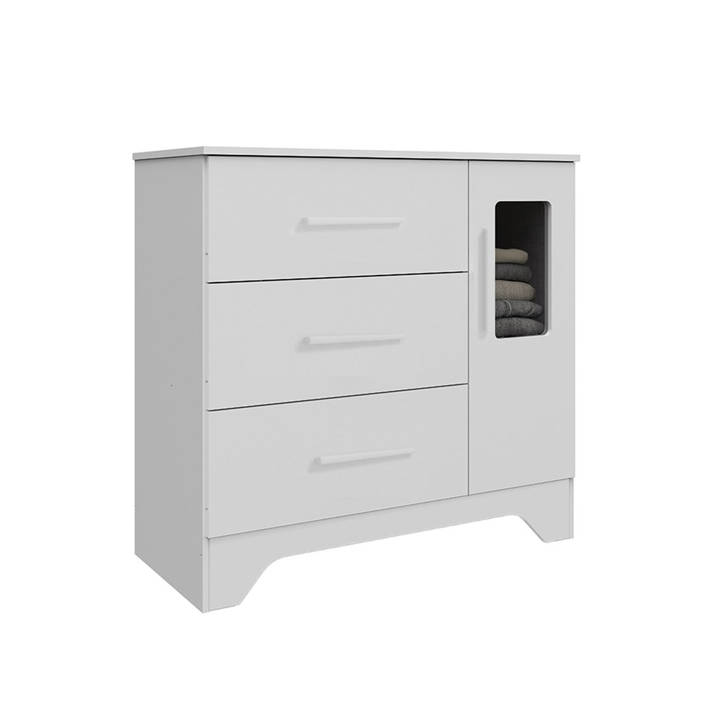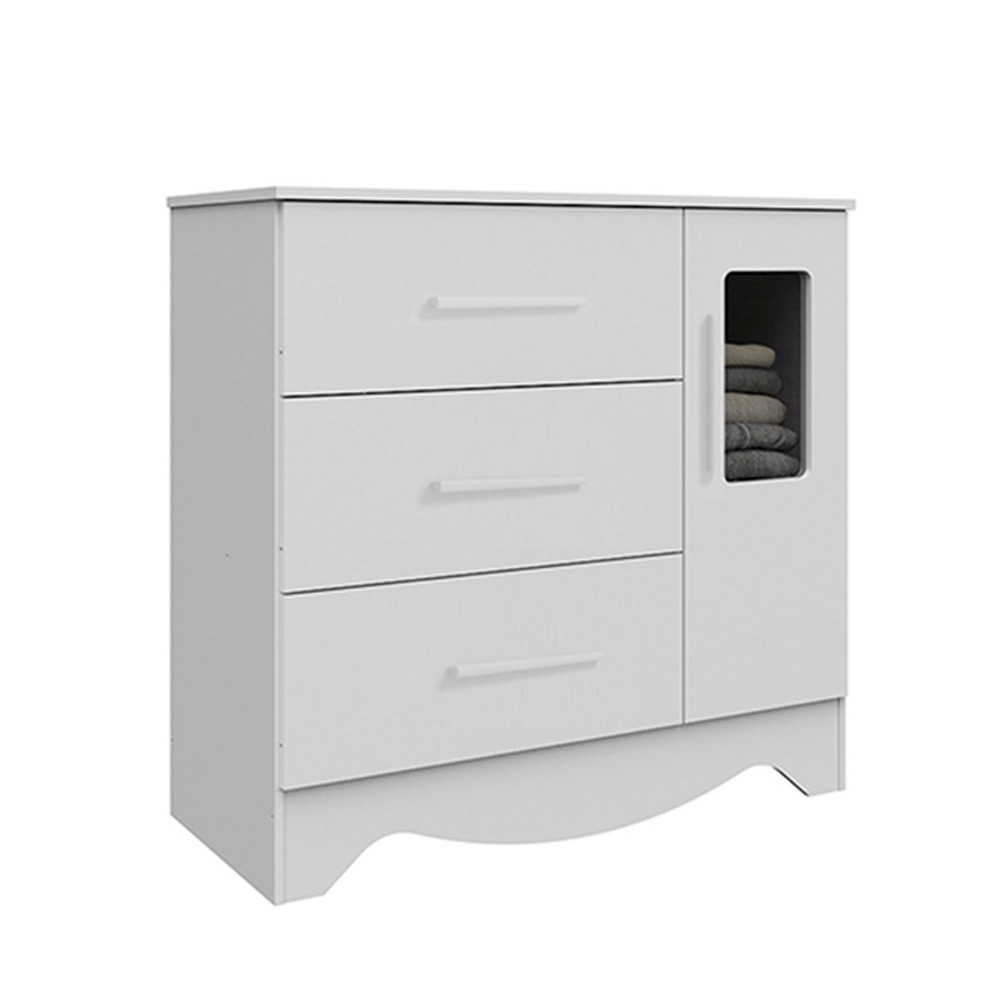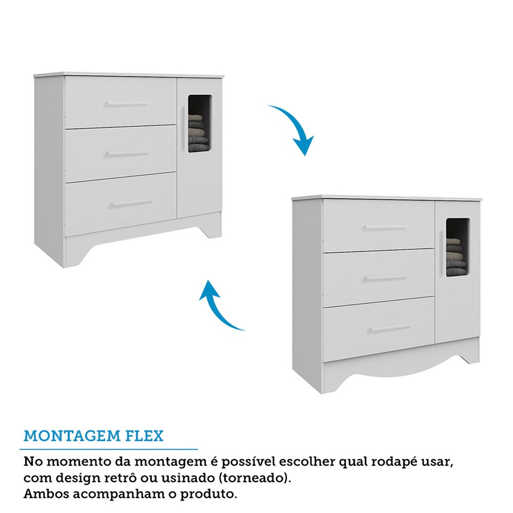 O(a) Cômoda Infantil Popy Retrô 1 Porta com Janela e 3 Gavetas 100% Branco Brilho - Móveis Peroba é produzido em 100% MDF na escala de brilho Brilhante, e possui um grau de dificuldade de montagem: Difícil.