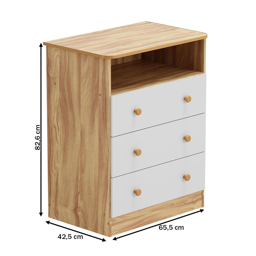 O(a) Cômoda Infantil Smim New 3 Gavetas 100% Mdf Branco Brilho/Amêndoa - Móveis Peroba é produzido em 100% MDF na escala de brilho Brilhante, e possui um grau de dificuldade de montagem: Médio.