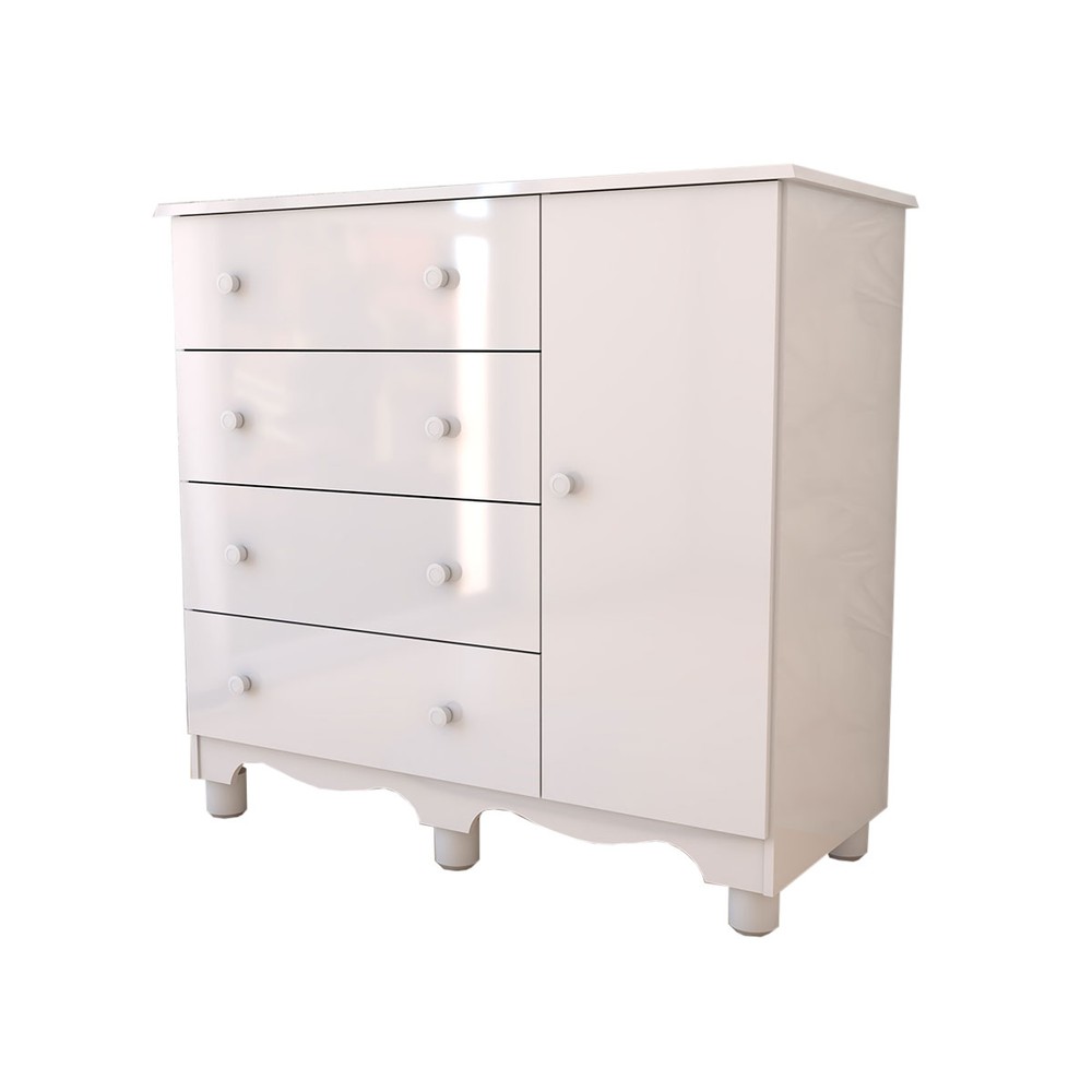 O(a) Cômoda Infantil Sueño 1 Porta 4 Gavetas 100% Mdf Branco Brilho - Panorama Móveis é produzido em 100% MDF na escala de brilho Brilhante e Semi-Brilho, e possui um grau de dificuldade de montagem: Médio.