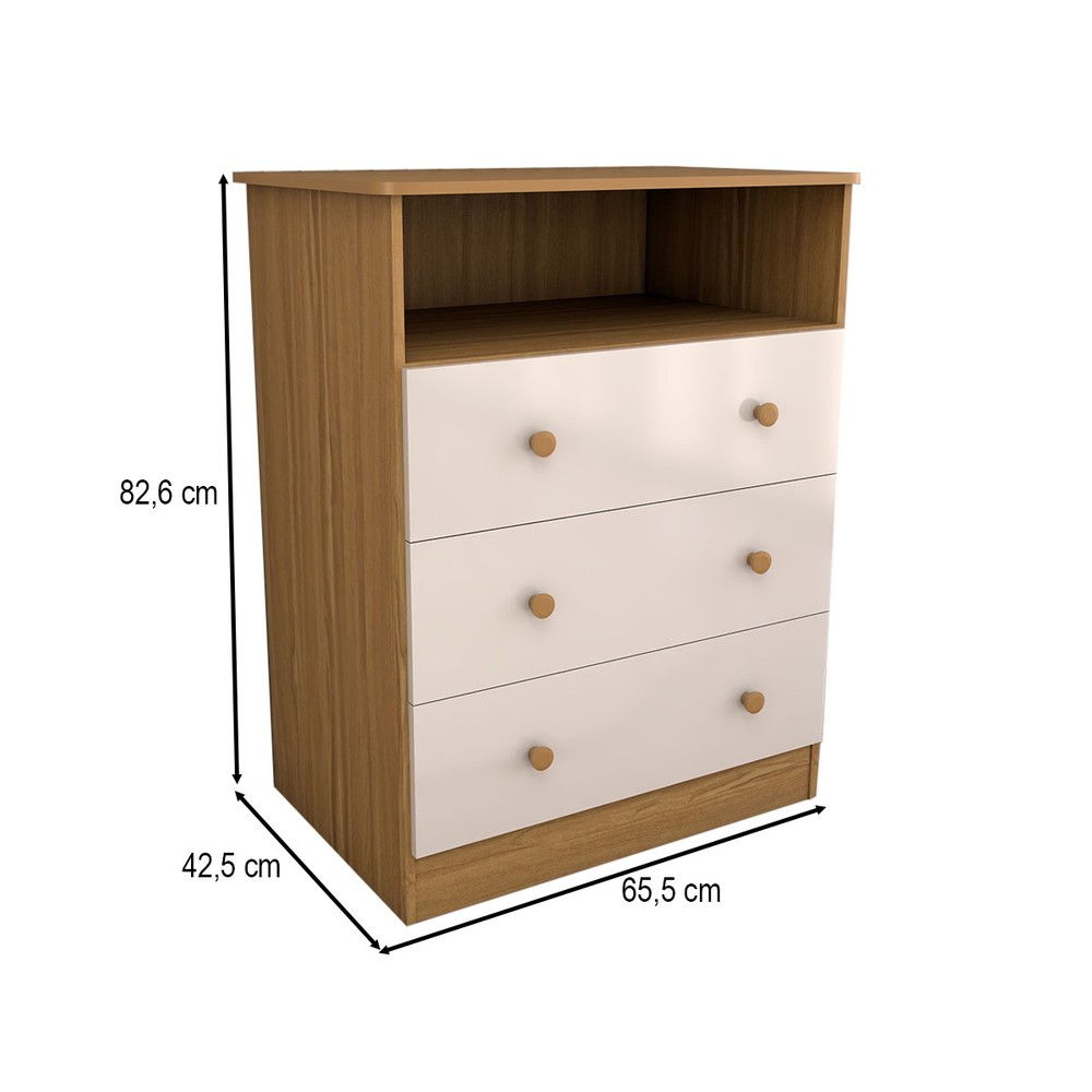 O(a) Cômoda Infantil Sueño 3 Gavetas 100% Mdf Branco Brilho/Amendoa - Panorama Móveis é produzido em 100% MDF na escala de brilho Brilhante e Semi-Brilho, e possui um grau de dificuldade de montagem: Médio.