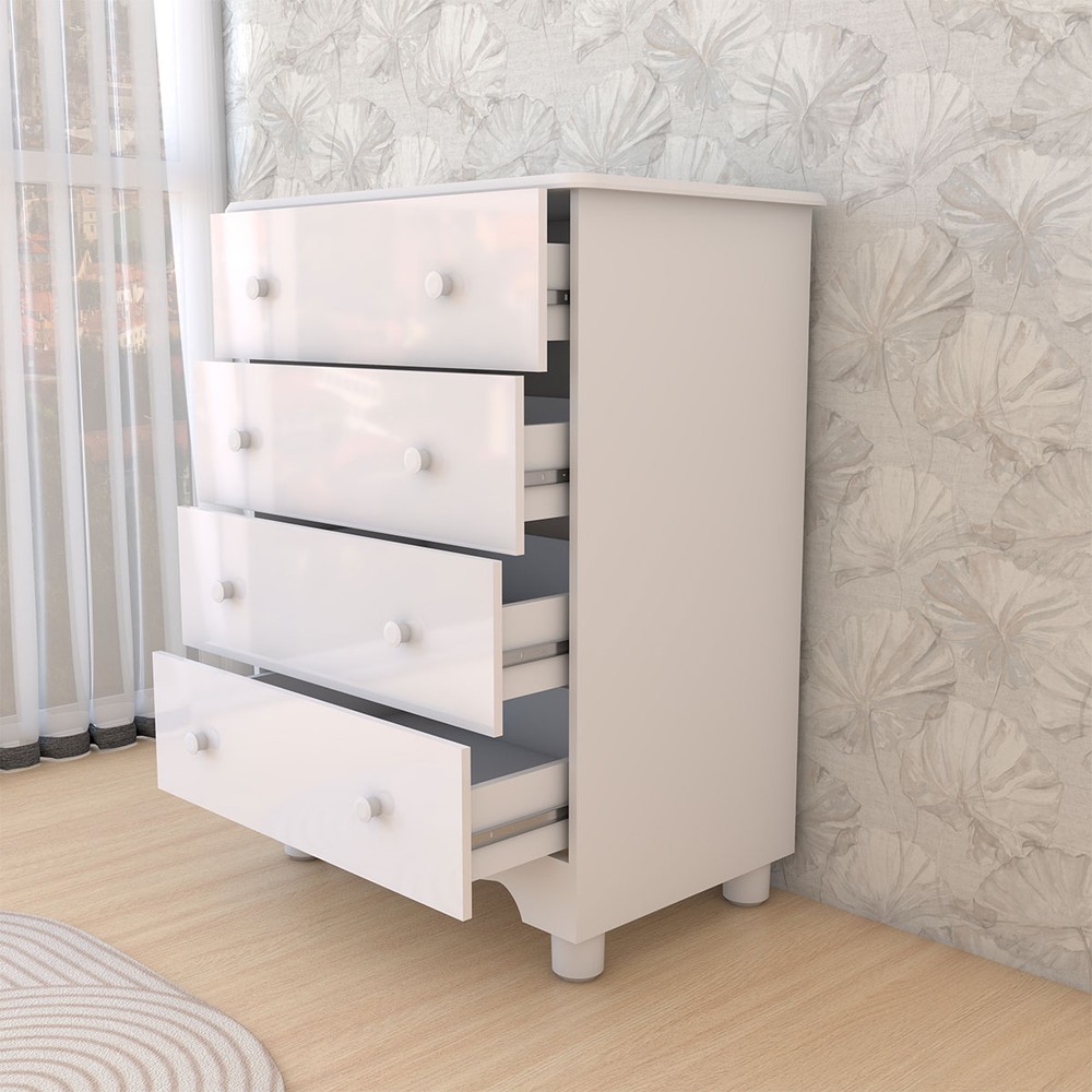 O(a) Cômoda Infantil Sueño 4 Gavetas 100% Mdf Branco Brilho - Panorama Móveis é produzido em 100% MDF na escala de brilho Brilhante e Semi-Brilho, e possui um grau de dificuldade de montagem: Médio.