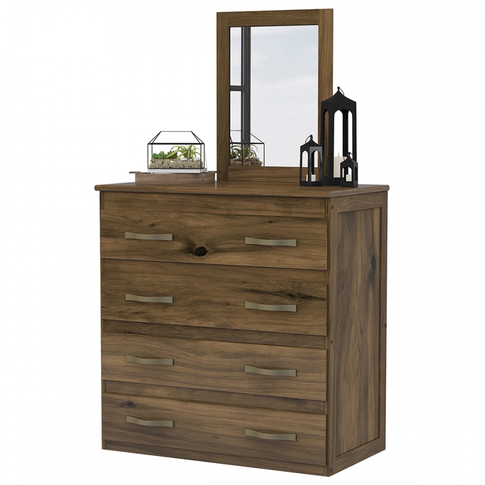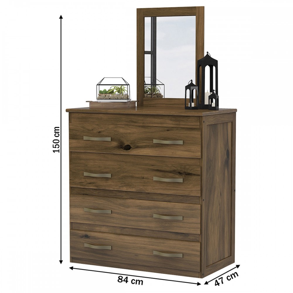 O(a) Cômoda Lisboa 4 Gavetas com Espelho Madeira Maciça Castanho - Lanes é produzido em Pinus na escala de brilho Alto Brilho, e possui um grau de dificuldade de montagem: Médio.