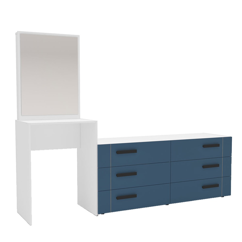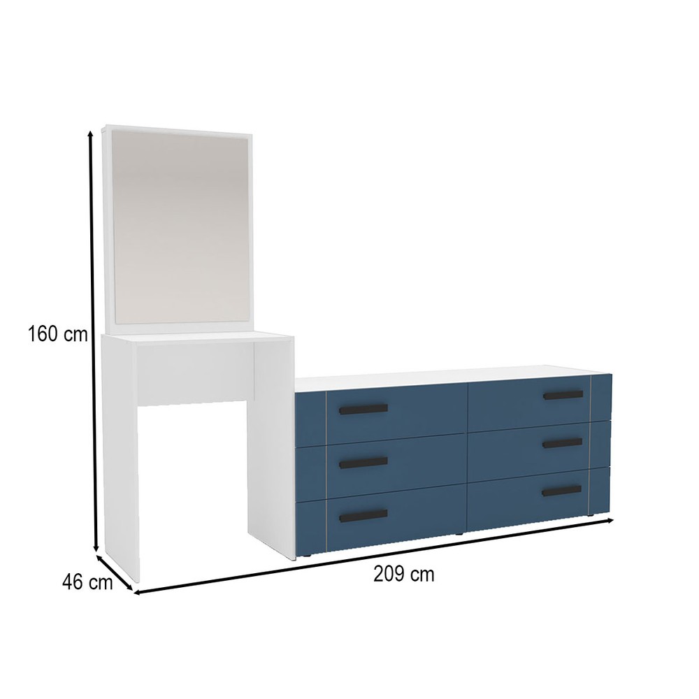 Cômoda Lisboa 6 Gavetas com Espelho Azul/Branco - Politorno