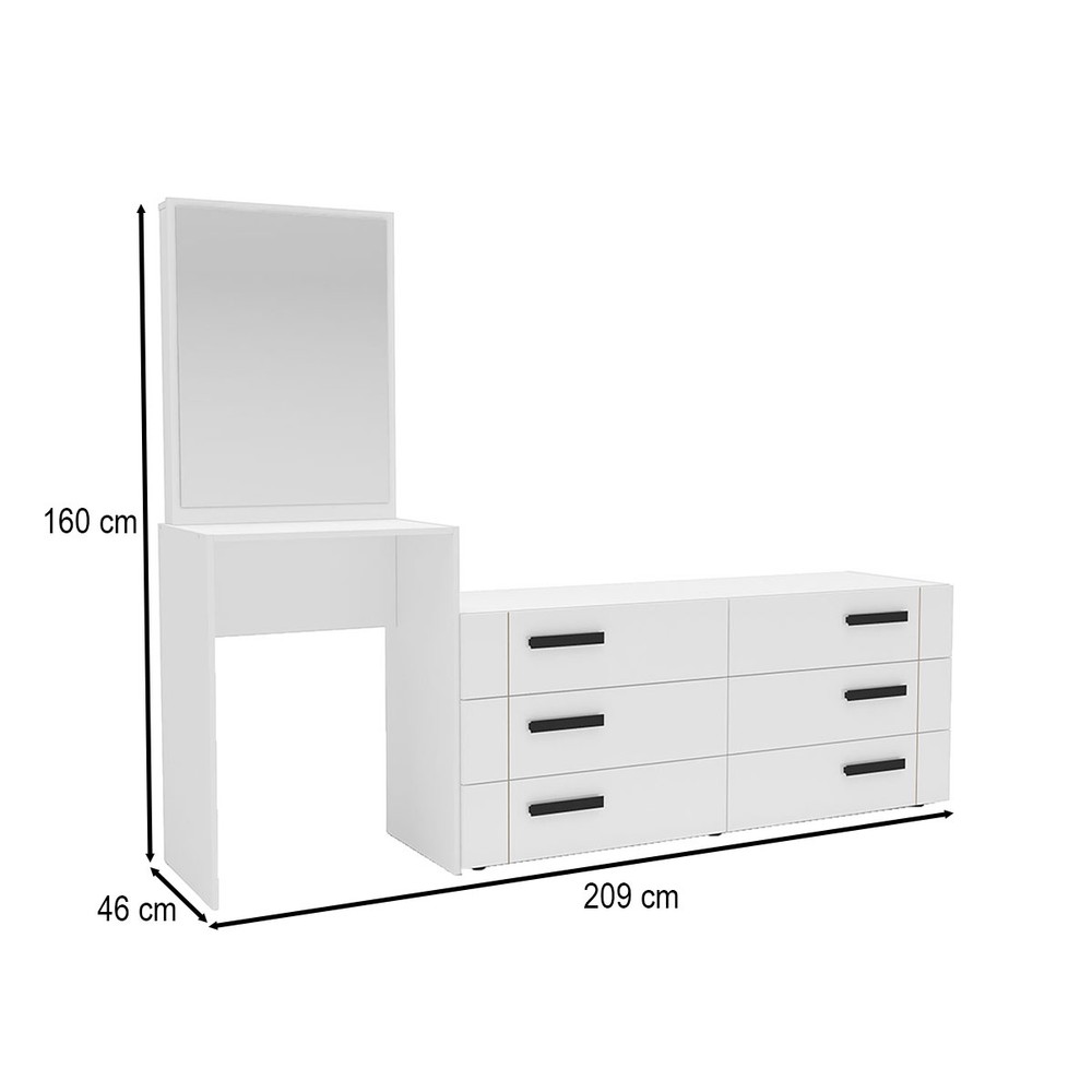 Cômoda Lisboa 6 Gavetas com Espelho Branco - Politorno