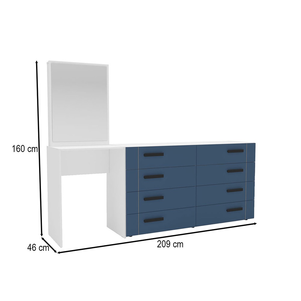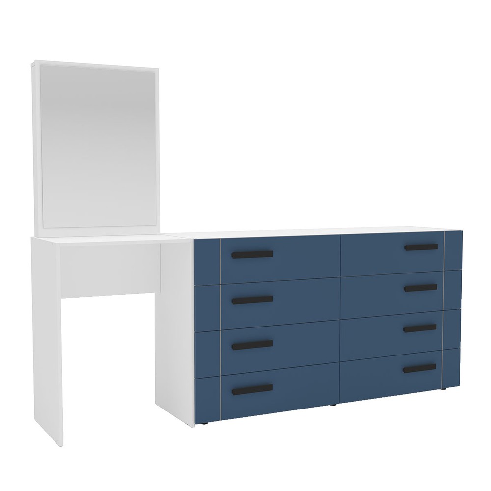 Cômoda Lisboa 8 Gavetas com Espelho Azul/Branco - Politorno