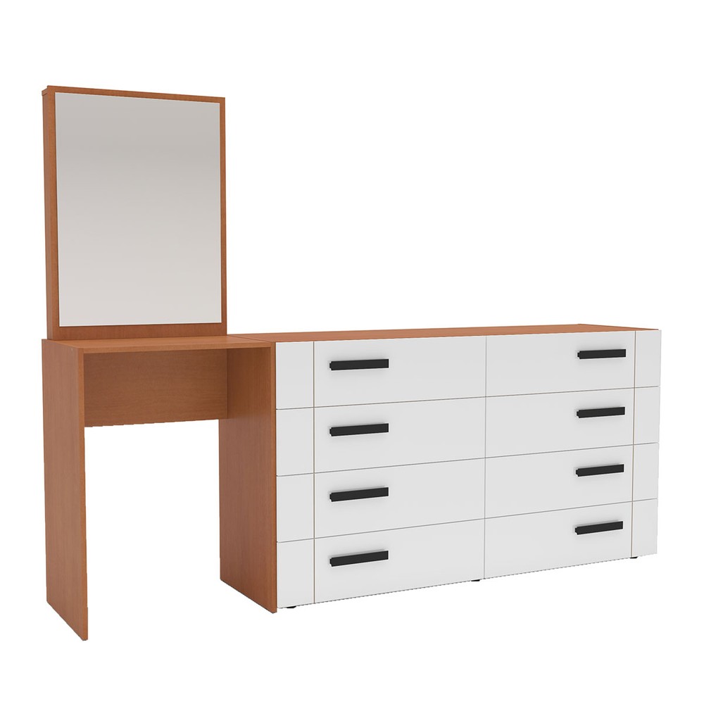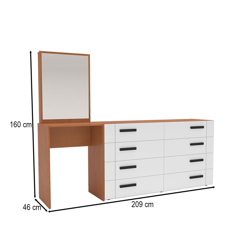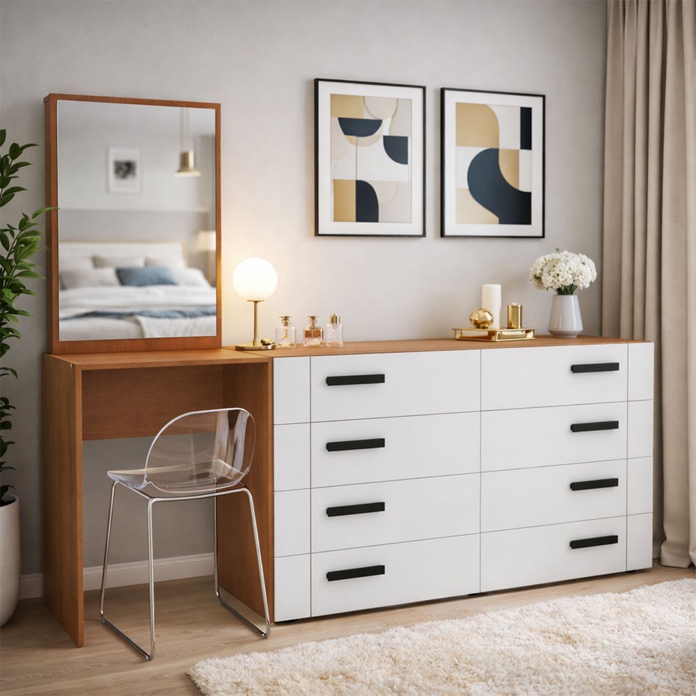 Cômoda Lisboa 8 Gavetas com Espelho Branco/Freijó - Politorno