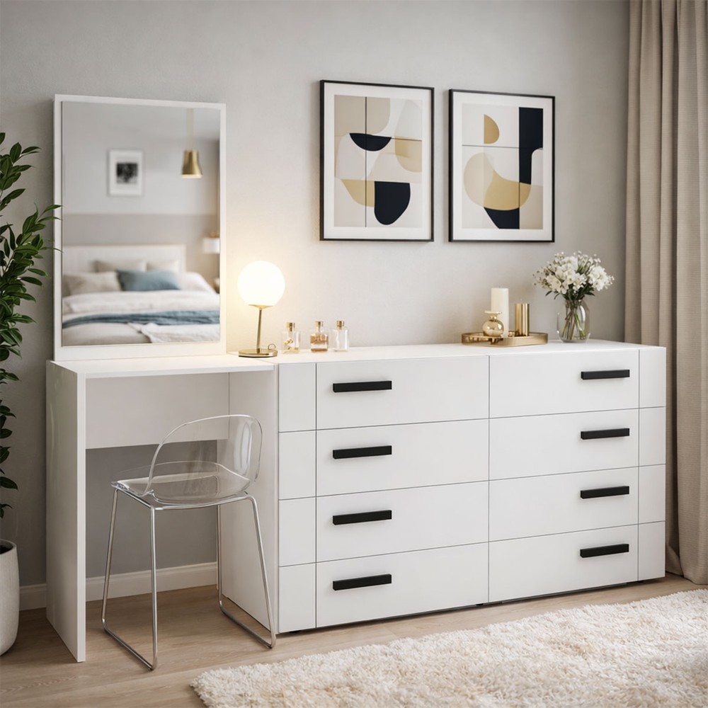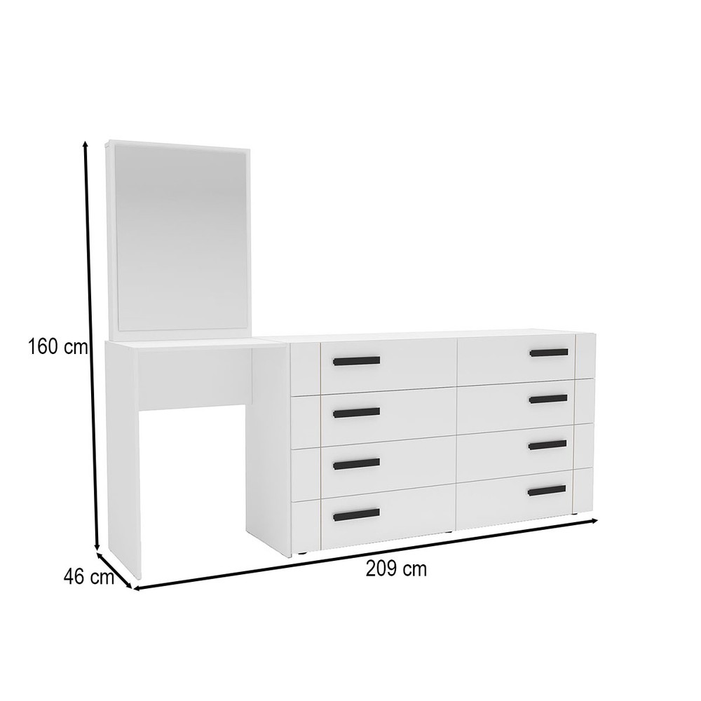 Cômoda Lisboa 8 Gavetas com Espelho Branco - Politorno