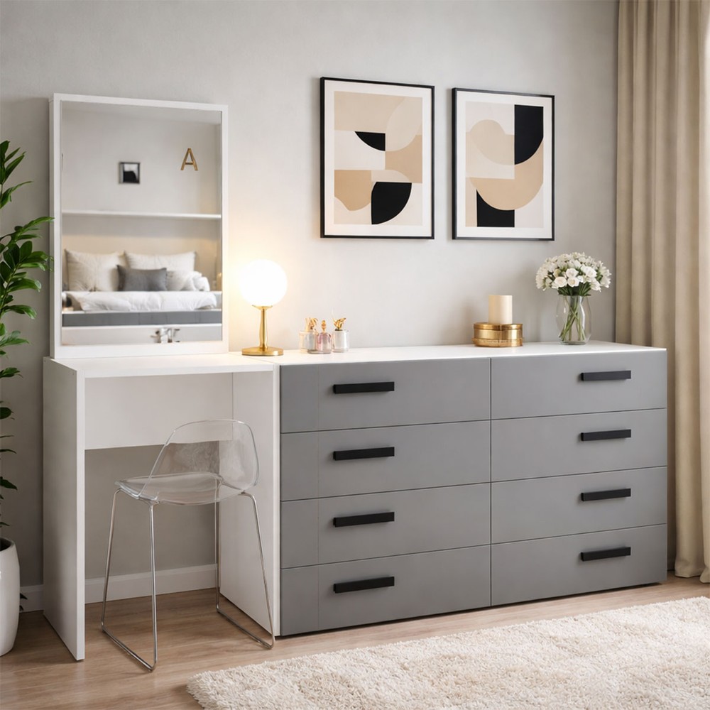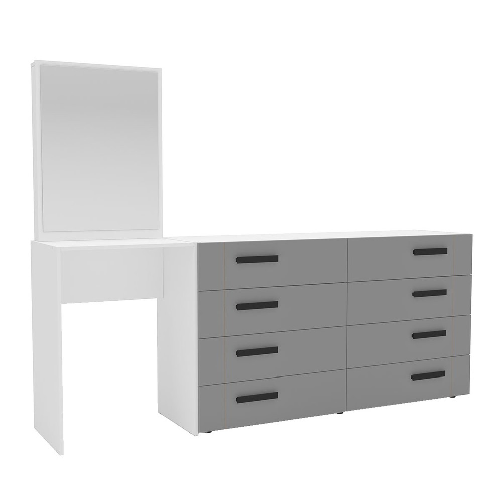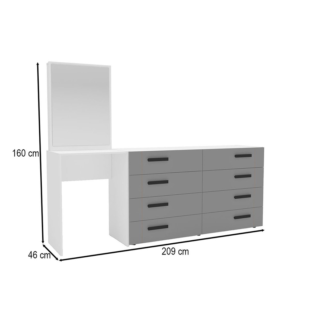 Cômoda Lisboa 8 Gavetas com Espelho Cinza/Branco - Politorno