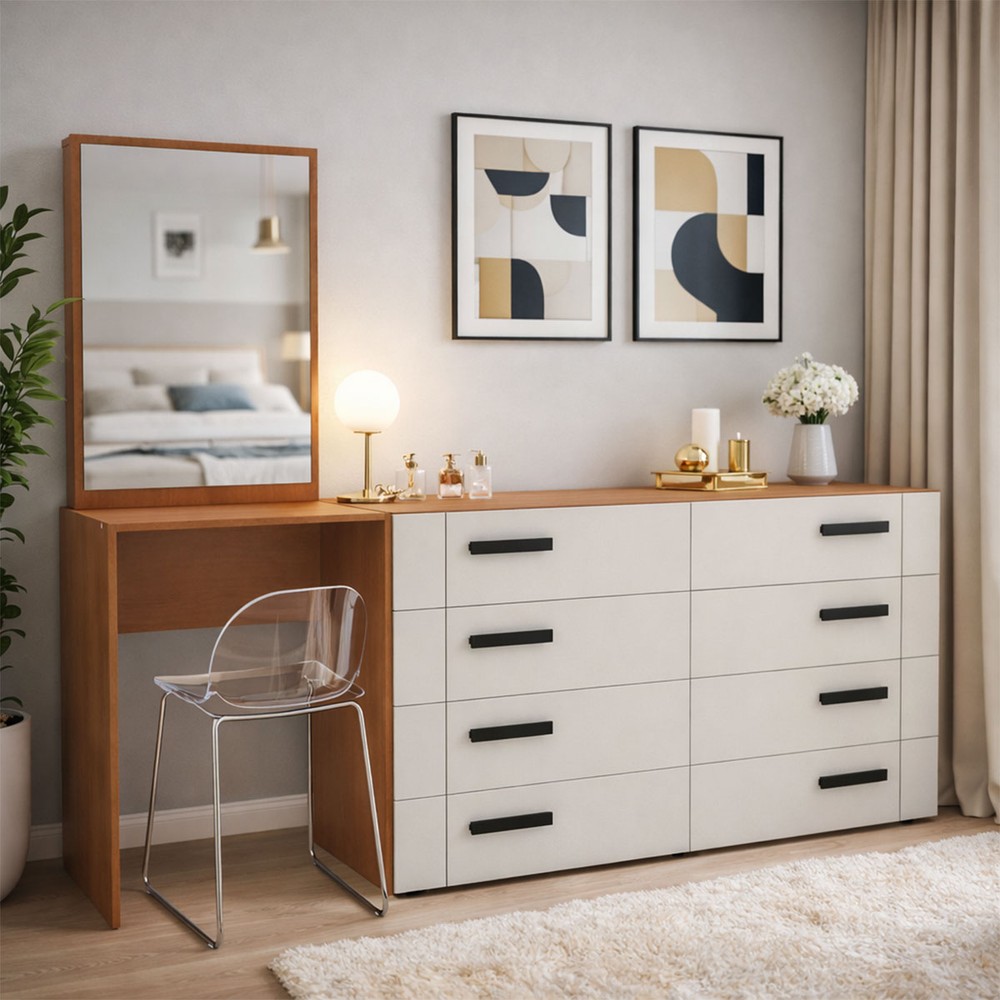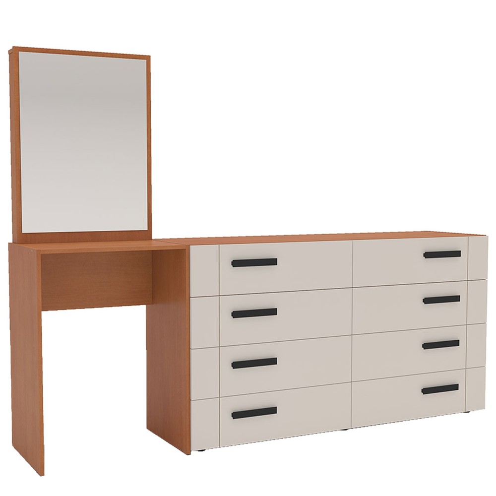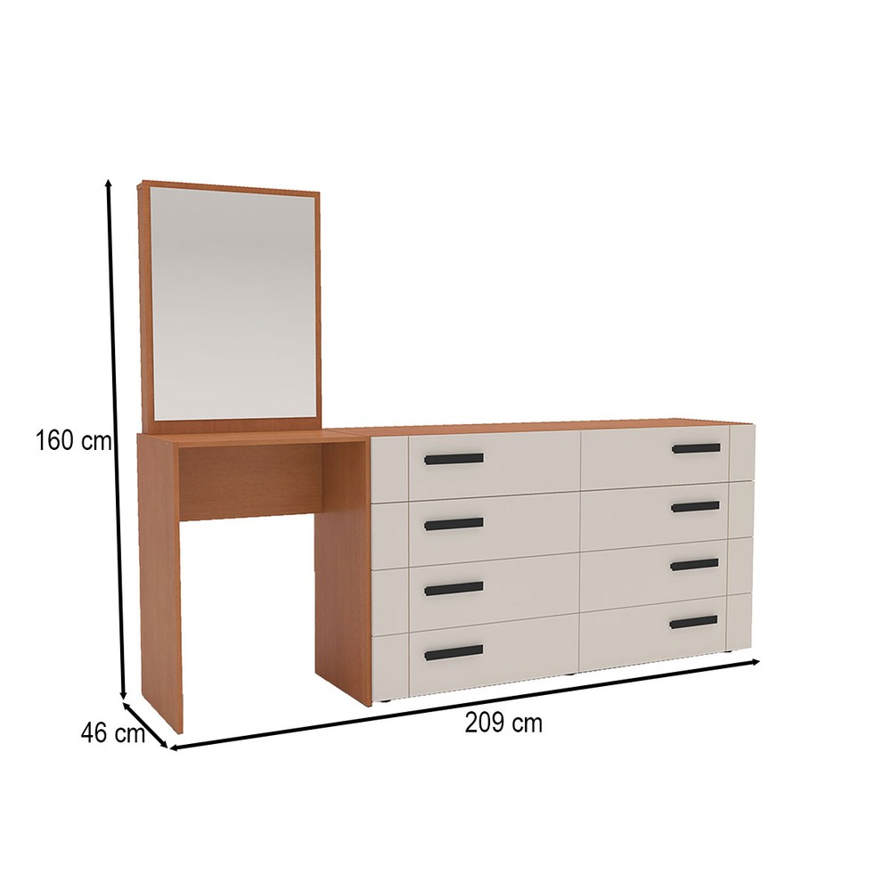 Cômoda Lisboa 8 Gavetas com Espelho Creme/Freijó - Politorno