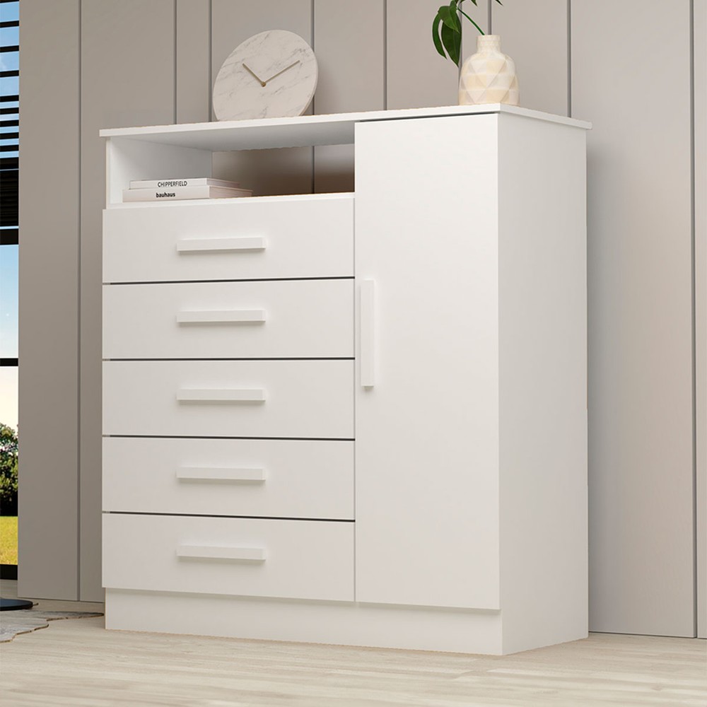 O(a) Cômoda Madri 1 Porta 5 Gavetas 100% Mdf Branco - Acp Móveis é produzido em 100% MDF na escala de brilho Brilhante e Semi-Brilho, e possui um grau de dificuldade de montagem: Médio.