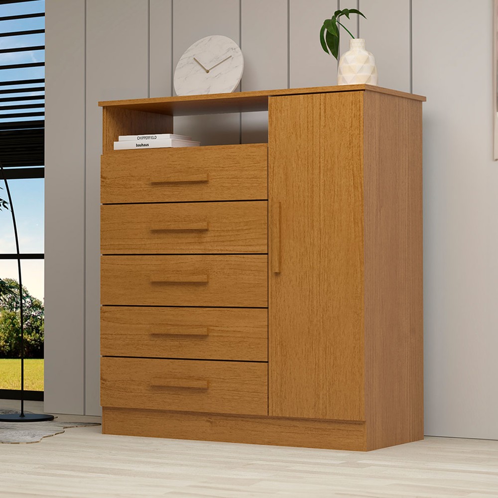O(a) Cômoda Madri 1 Porta 5 Gavetas 100% Mdf Cinamomo - Acp Móveis é produzido em 100% MDF na escala de brilho Brilhante e Semi-Brilho, e possui um grau de dificuldade de montagem: Médio.
